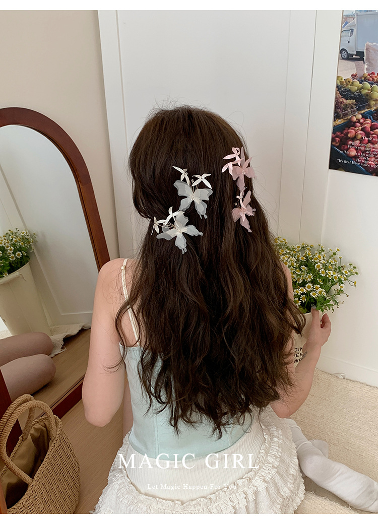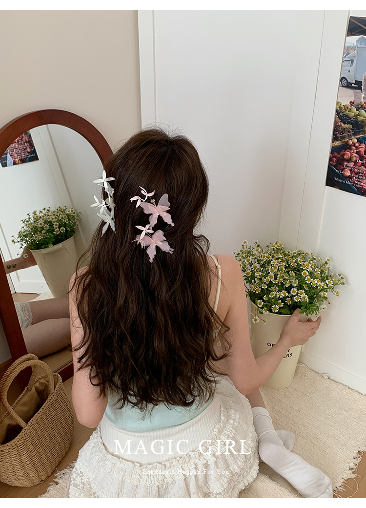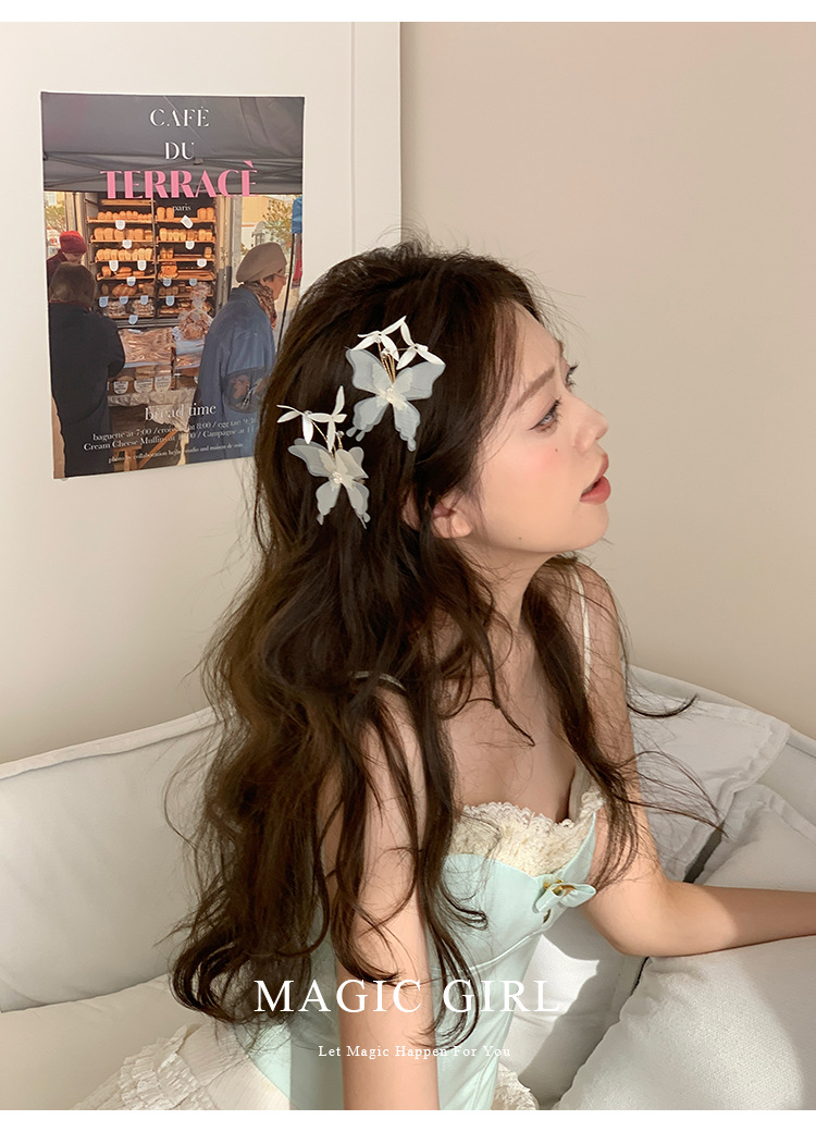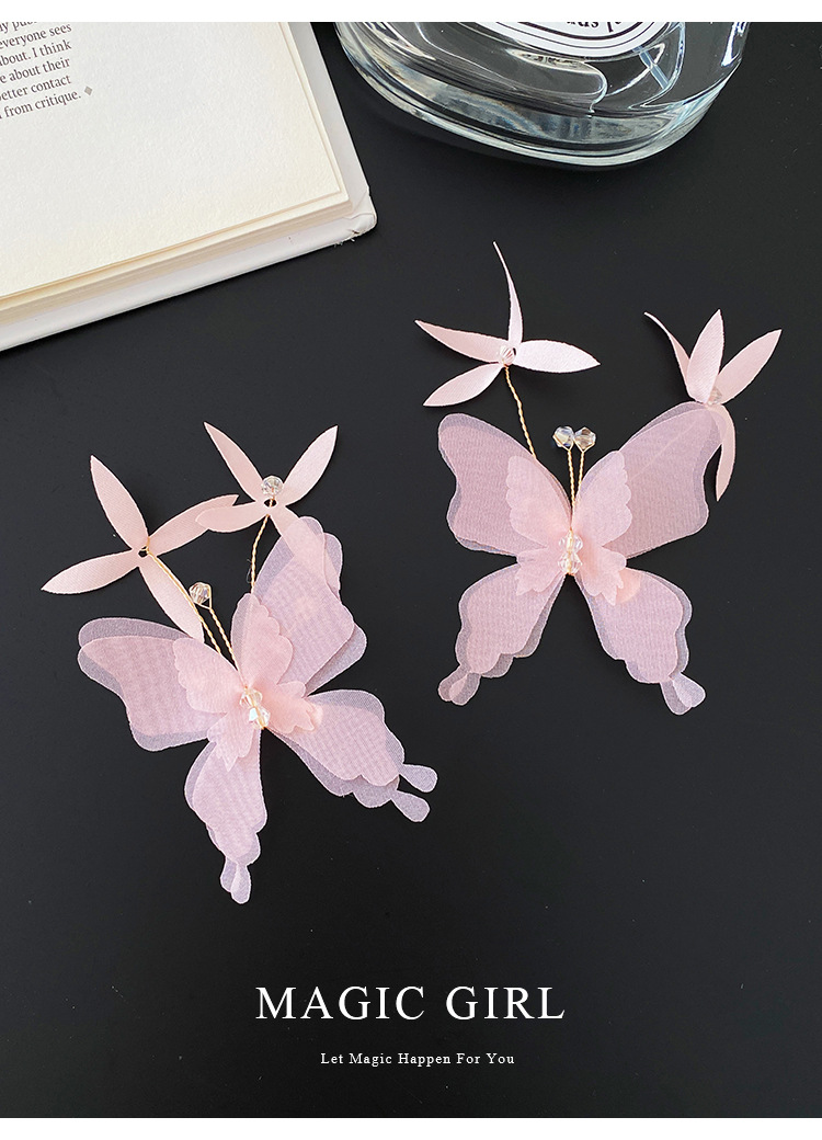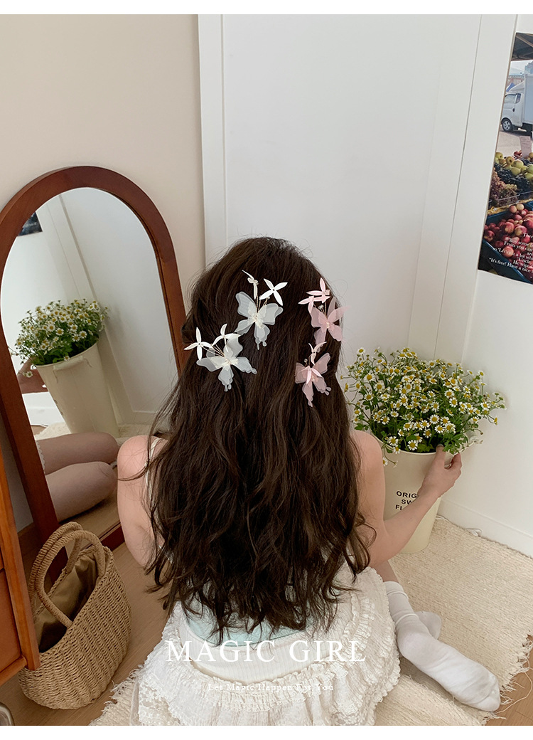 여성용 순수한 욕망 분위기의 나비 머리핀, 뒷머리 앞머리 클립, 이마 머리핀, 오리 슈퍼 요정 클립 머리 장식