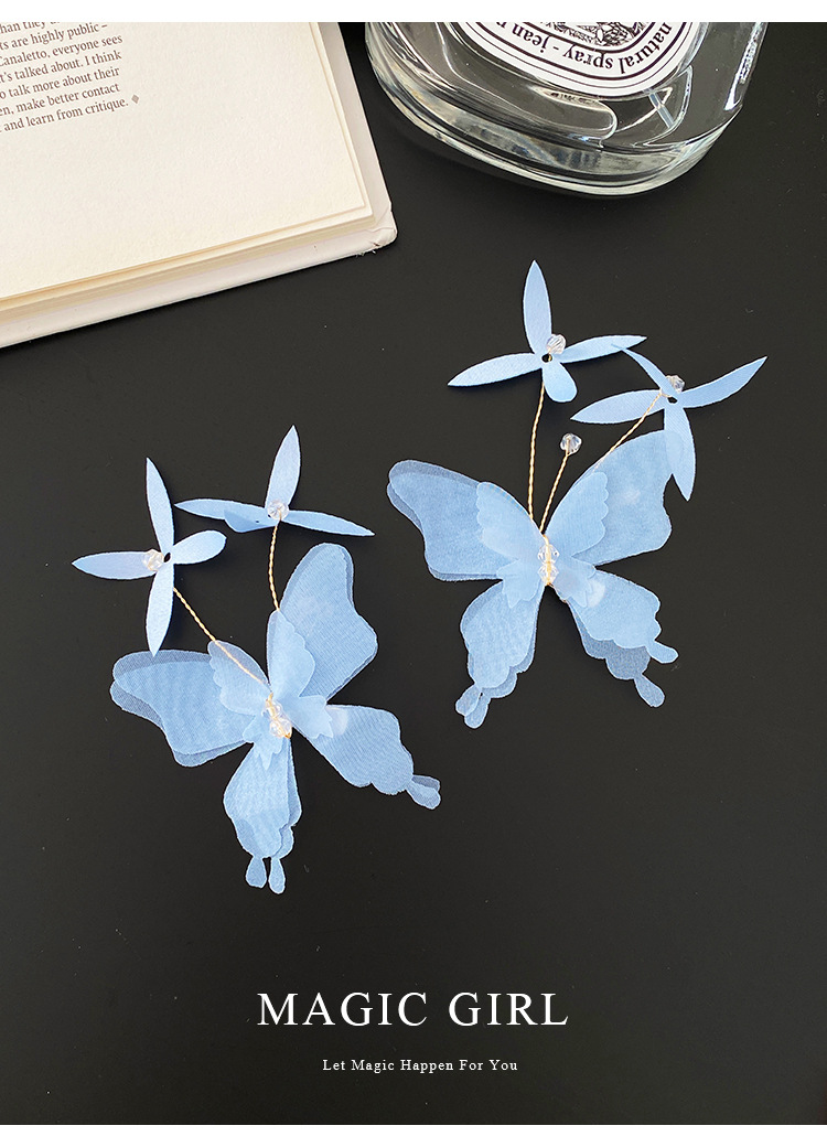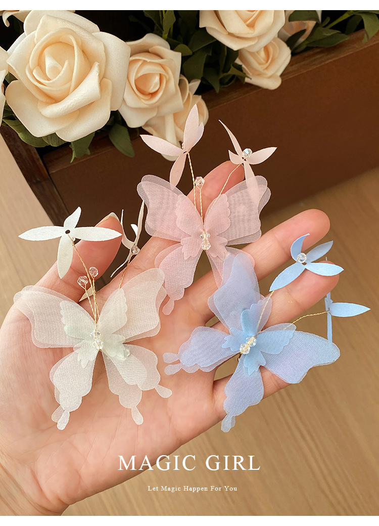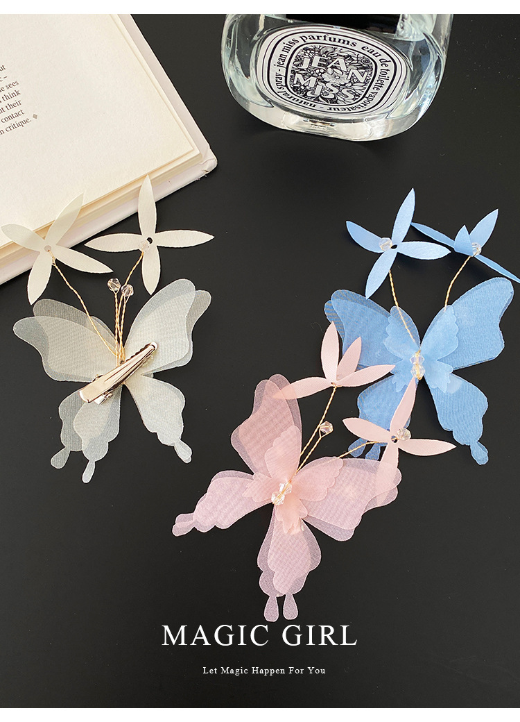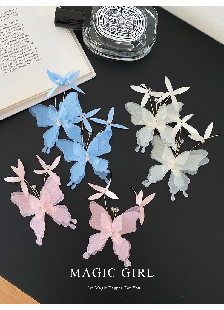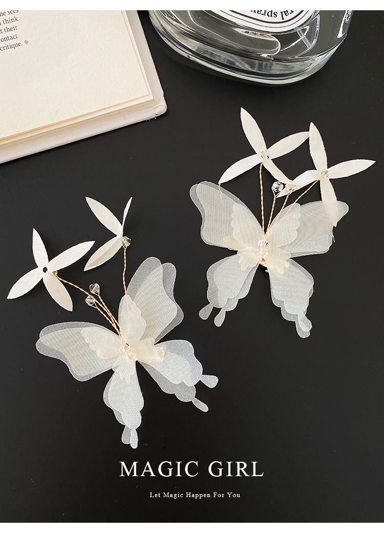 여성용 순수한 욕망 분위기의 나비 머리핀, 뒷머리 앞머리 클립, 이마 머리핀, 오리 슈퍼 요정 클립 머리 장식