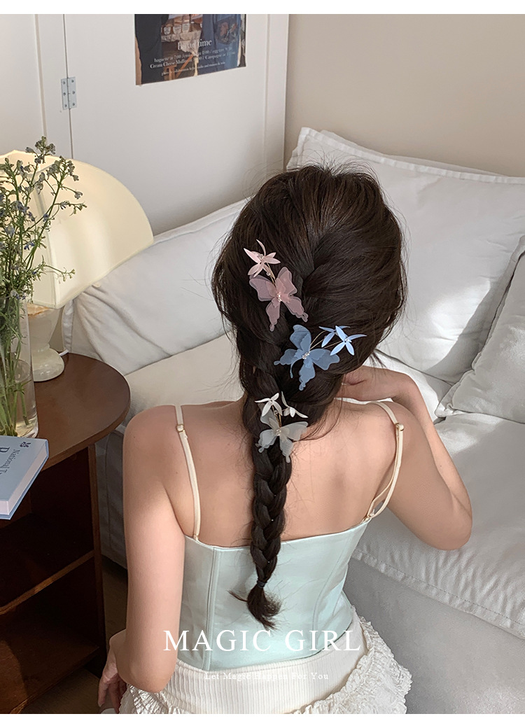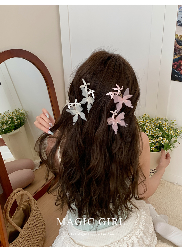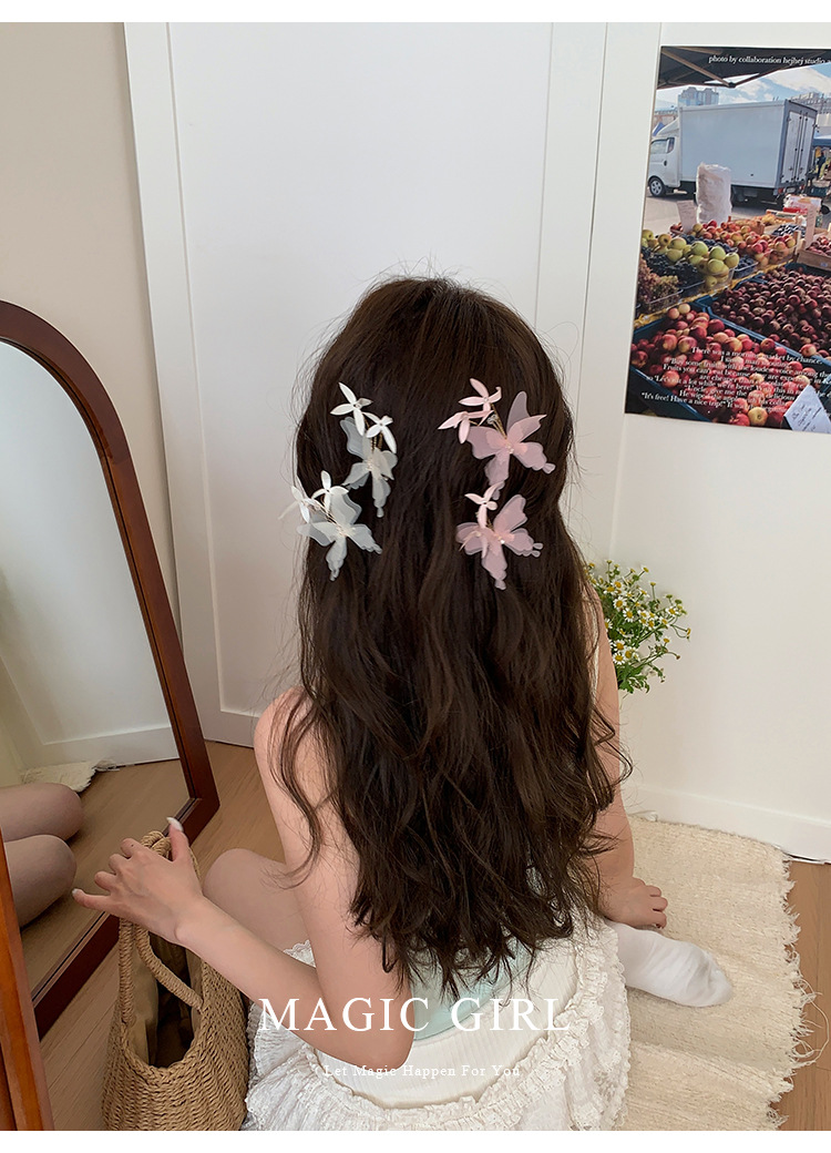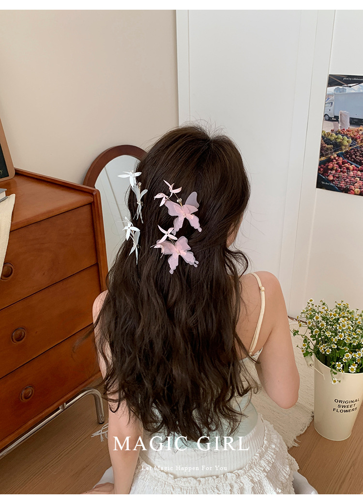 여성용 순수한 욕망 분위기의 나비 머리핀, 뒷머리 앞머리 클립, 이마 머리핀, 오리 슈퍼 요정 클립 머리 장식스토어 가기