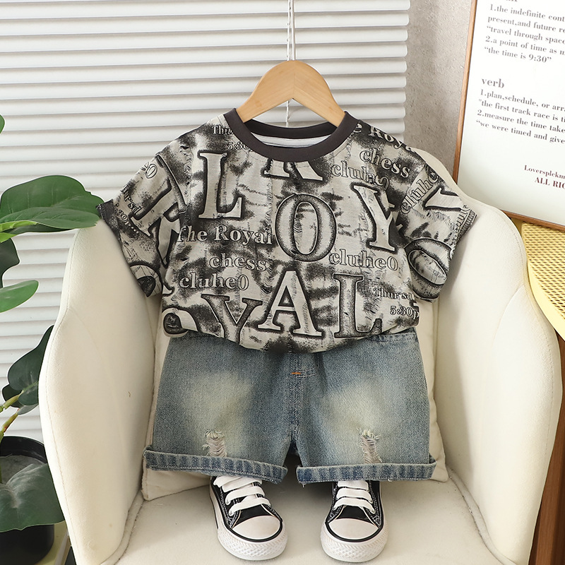 남아 여름 정장, 아동용 반팔 반바지, 남아 의류, 캐주얼하고 스타일리쉬한 아동복, 여름 투피스 세트스토어 가기