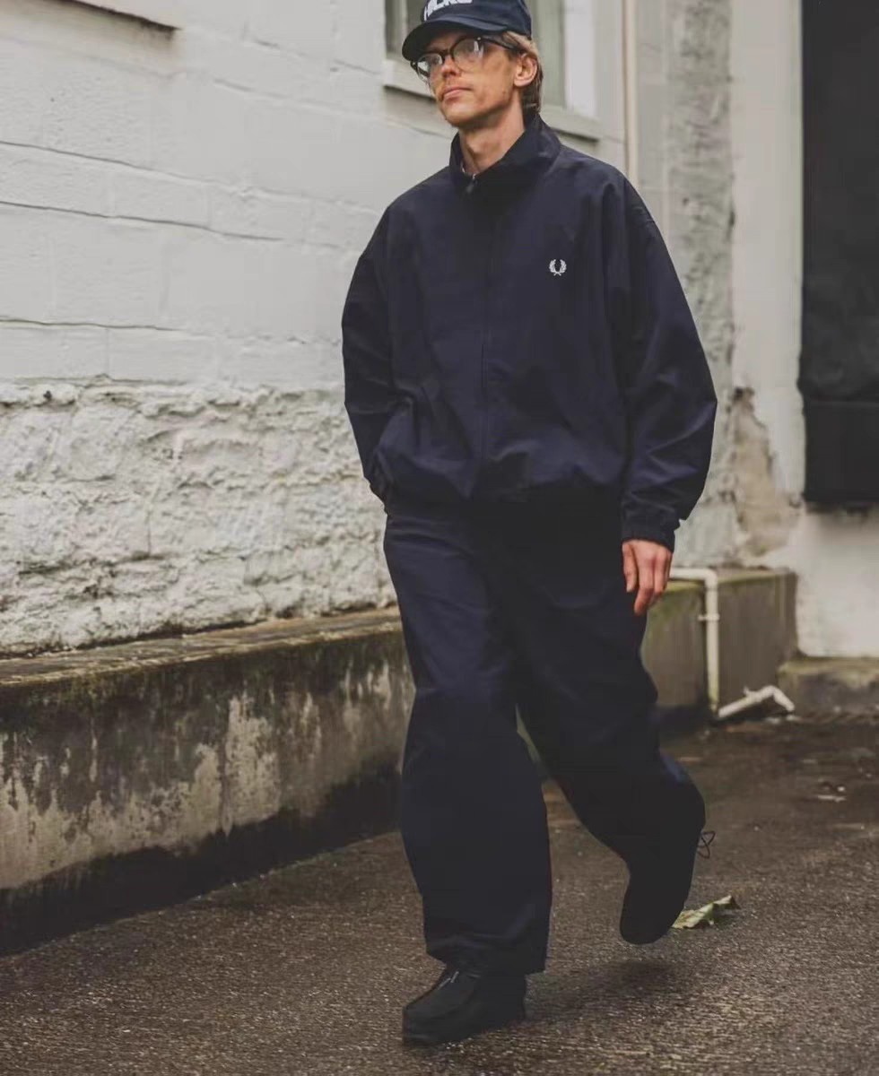 BEAMS x FP 클래식 밀 자수 레트로 스포츠 세트 남성 착용 문제를 해결하기위한 세트를 제안하십시오.스토어 가기