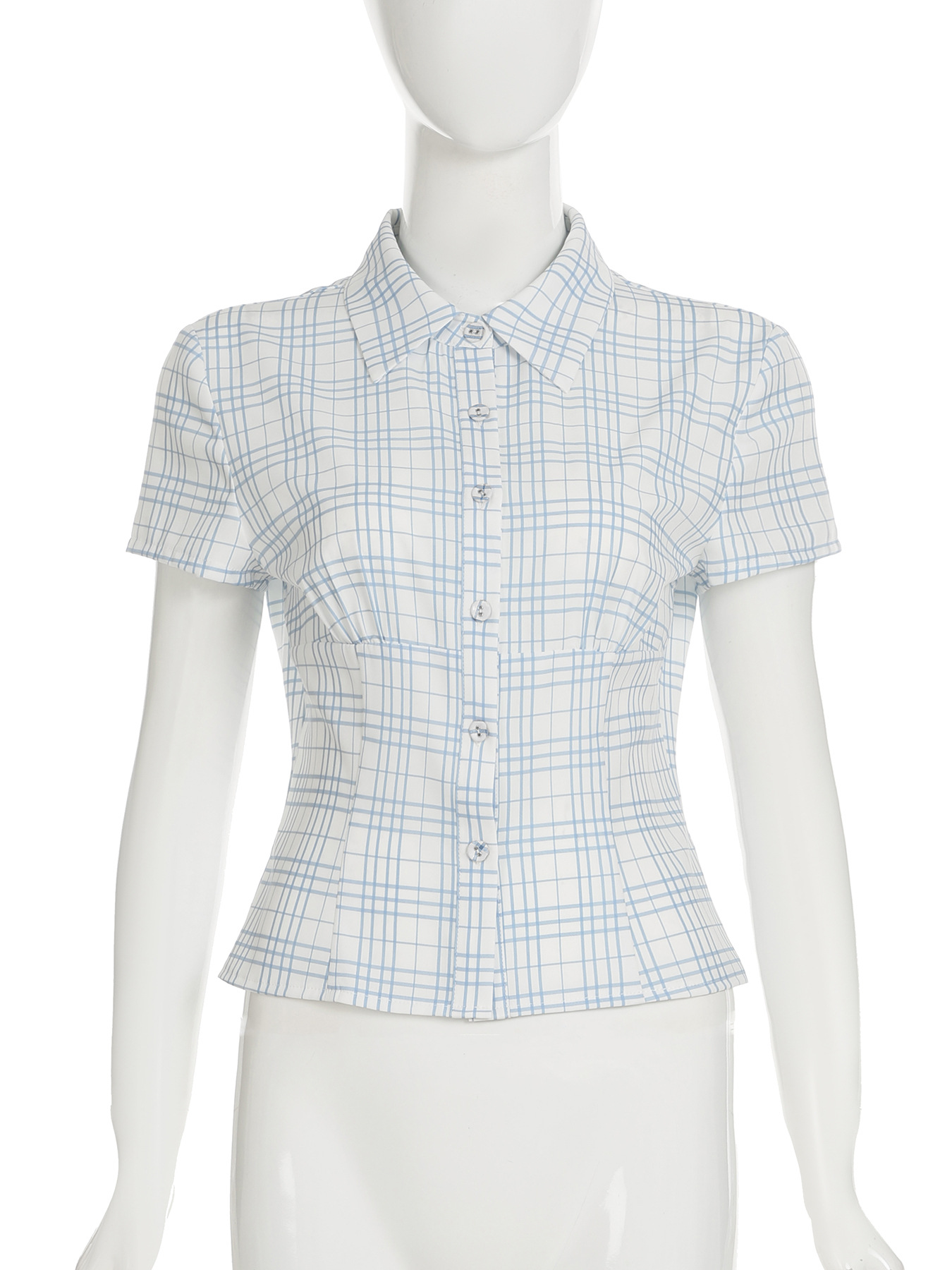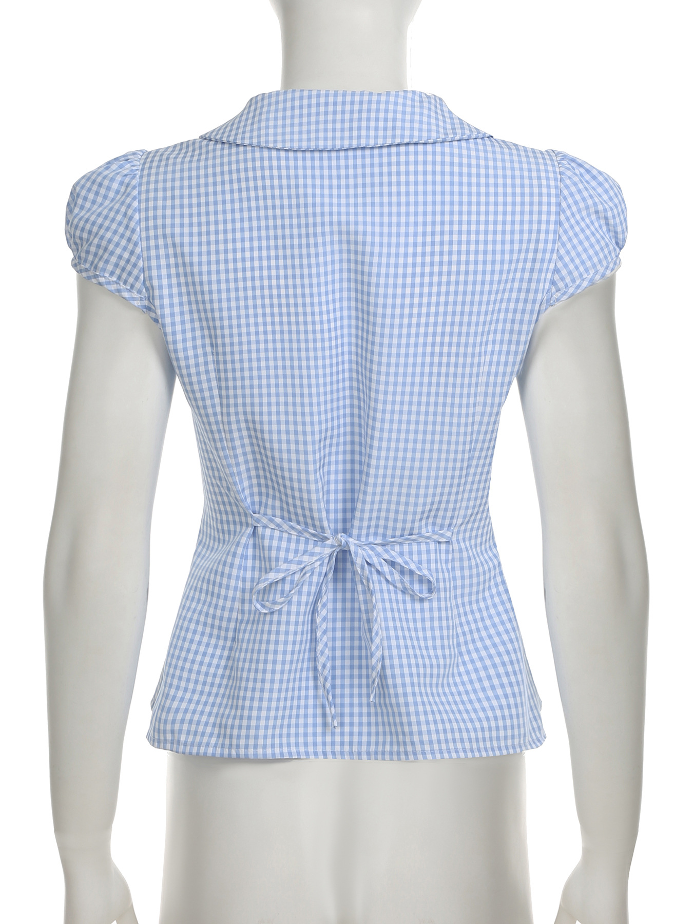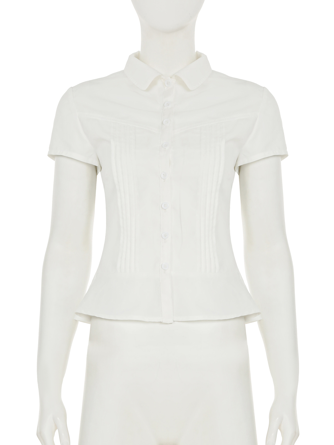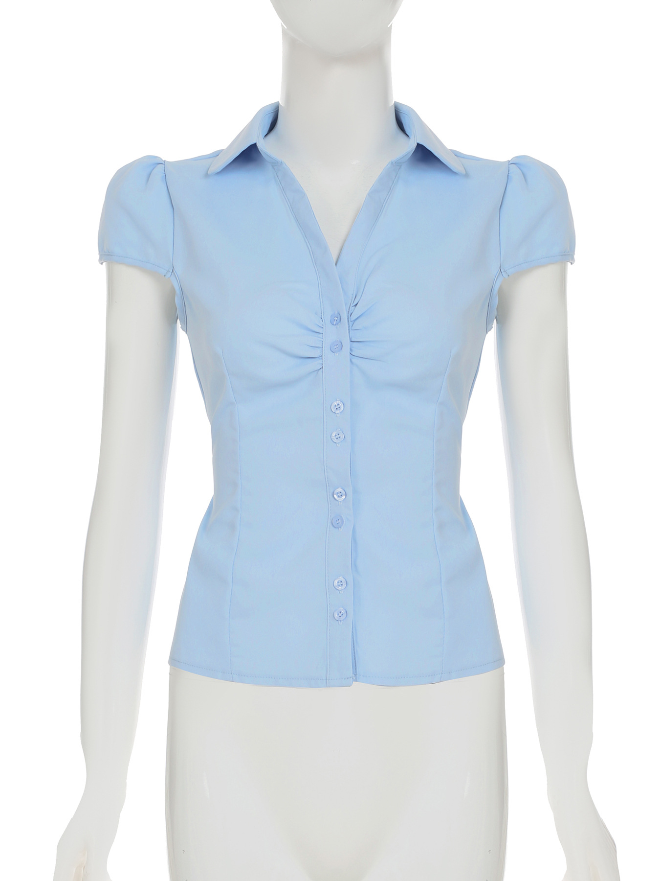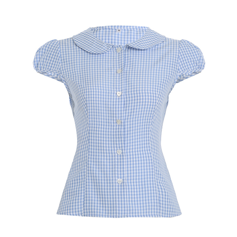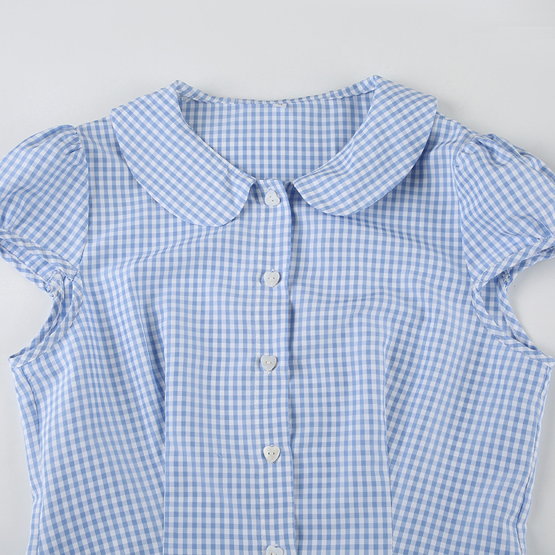 아메리칸 스타일 가리 스타일 우아한 오르간 주름 단색 폴로 칼라 짧은 소매 셔츠 타이트 허리 짧은 가슴 자른 탑스토어 가기