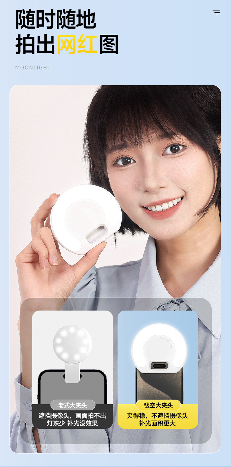 새로운 휴대 전화 뷰티 셀카 필 라이트 LED 미니 휴대용 야외 클립 야외 라이브 방송 조명스토어 가기