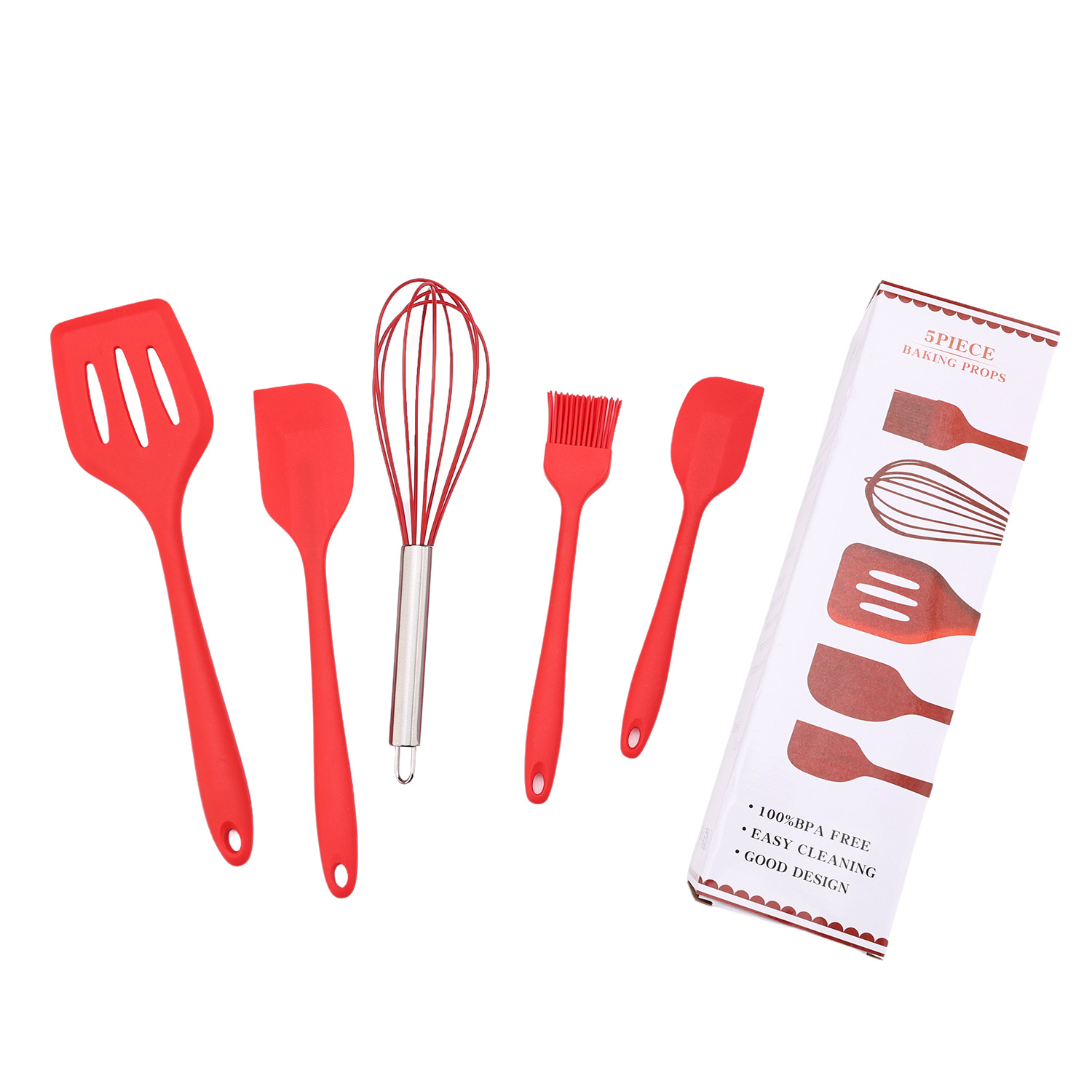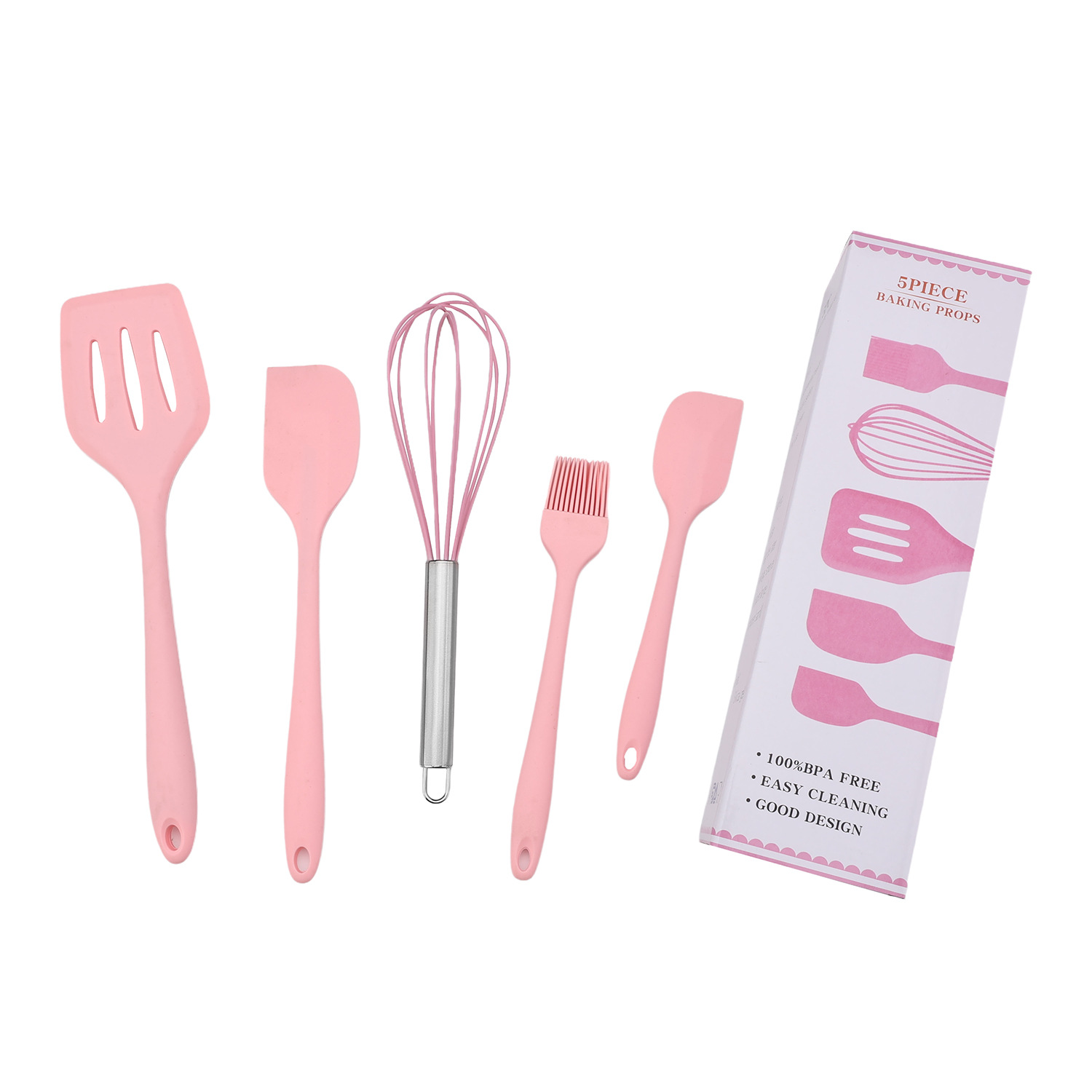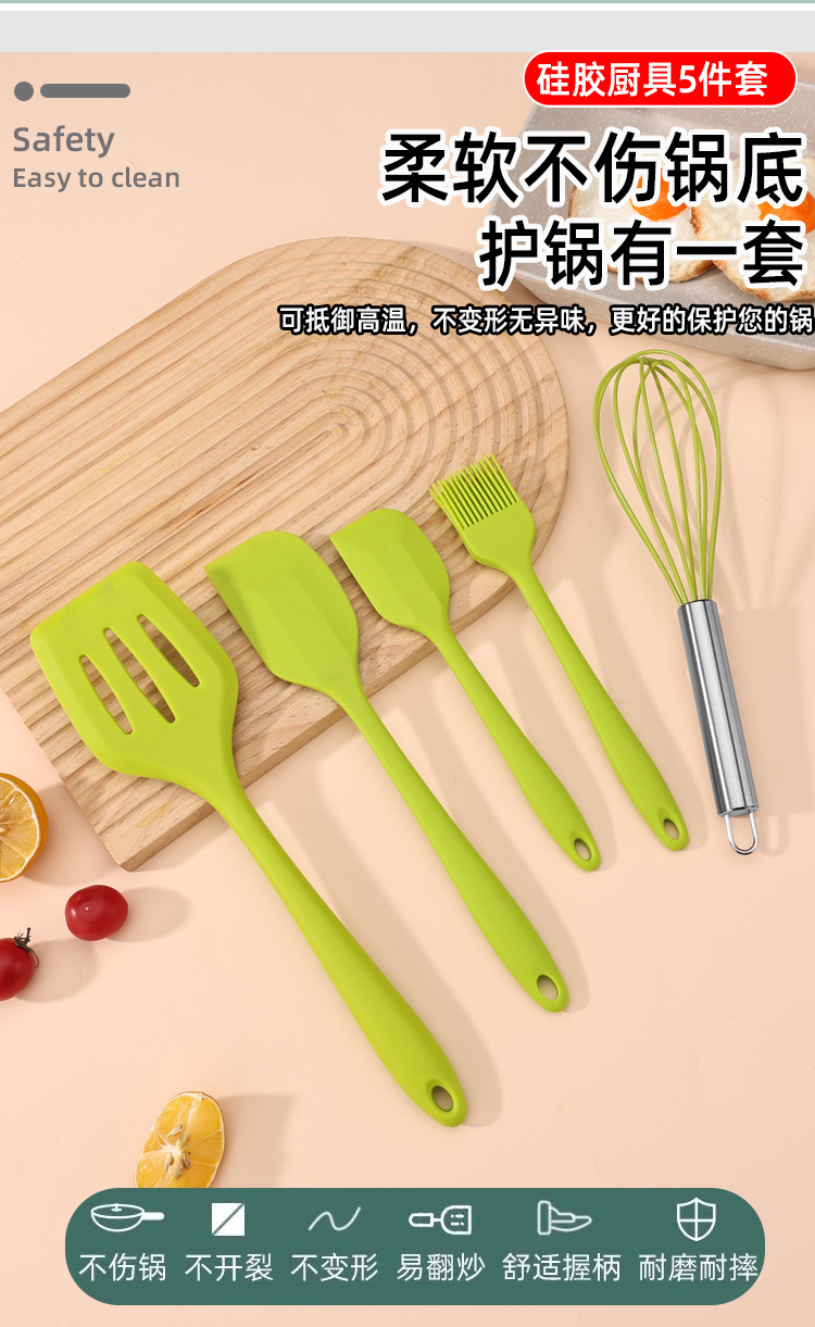 공장 직접 판매 5피스 가정용 주방용품 스크레이퍼 오일 브러시 계란 비터 주방 고온 방지 붙지 않는 팬 베이킹 세트