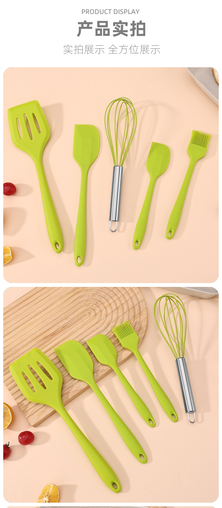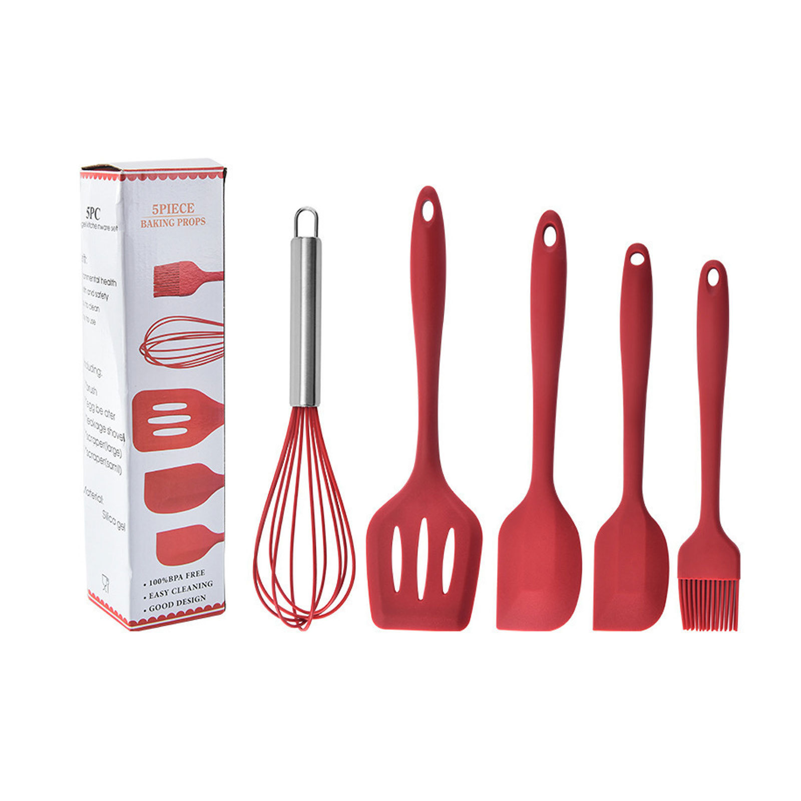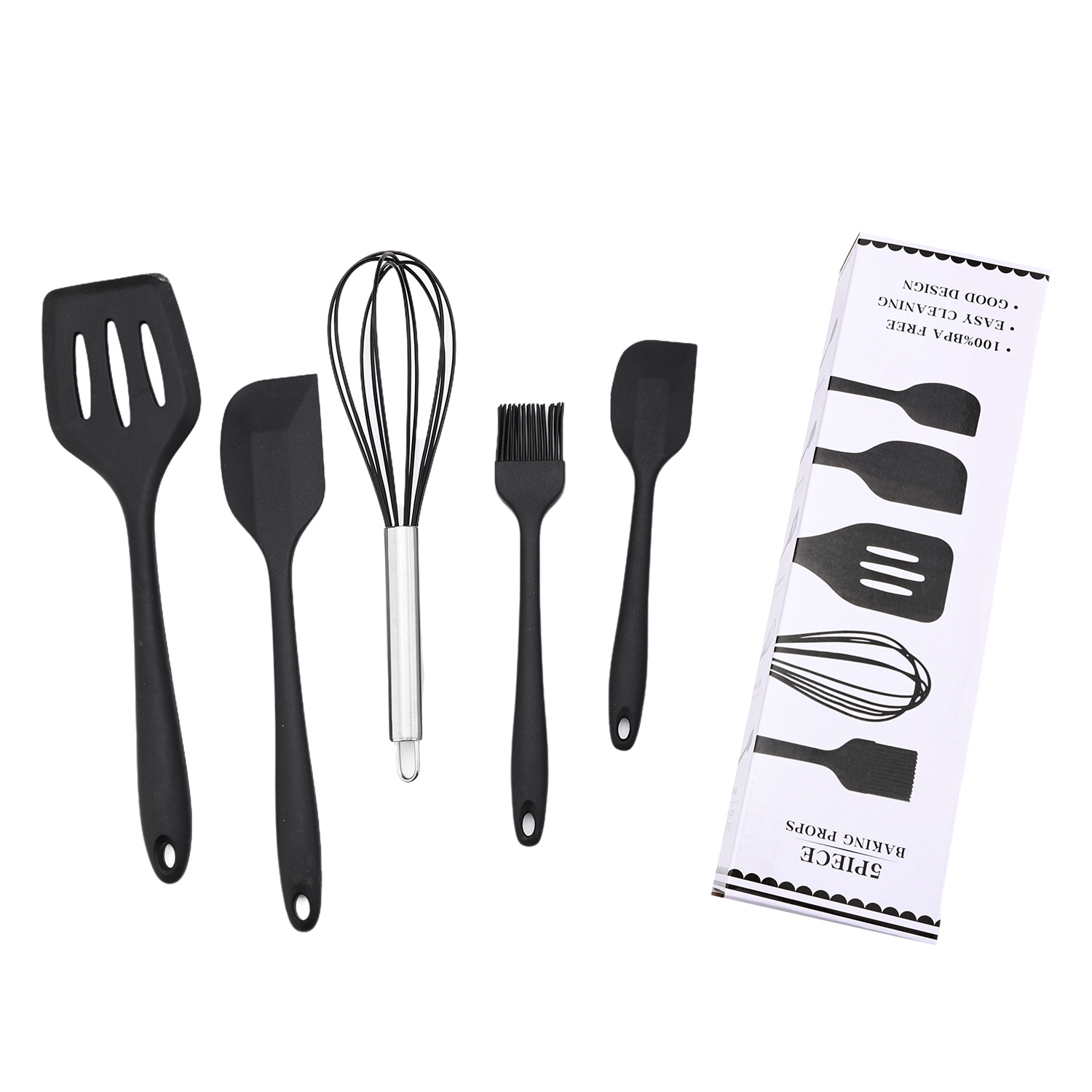 공장 직접 판매 5피스 가정용 주방용품 스크레이퍼 오일 브러시 계란 비터 주방 고온 방지 붙지 않는 팬 베이킹 세트