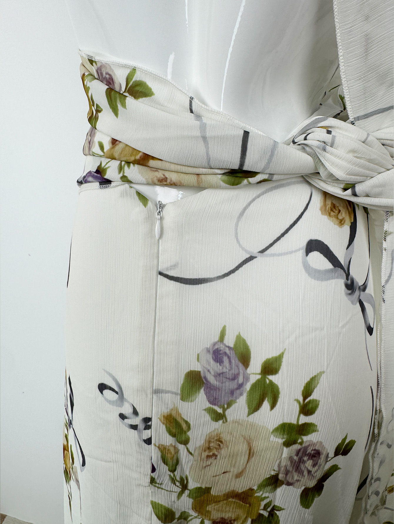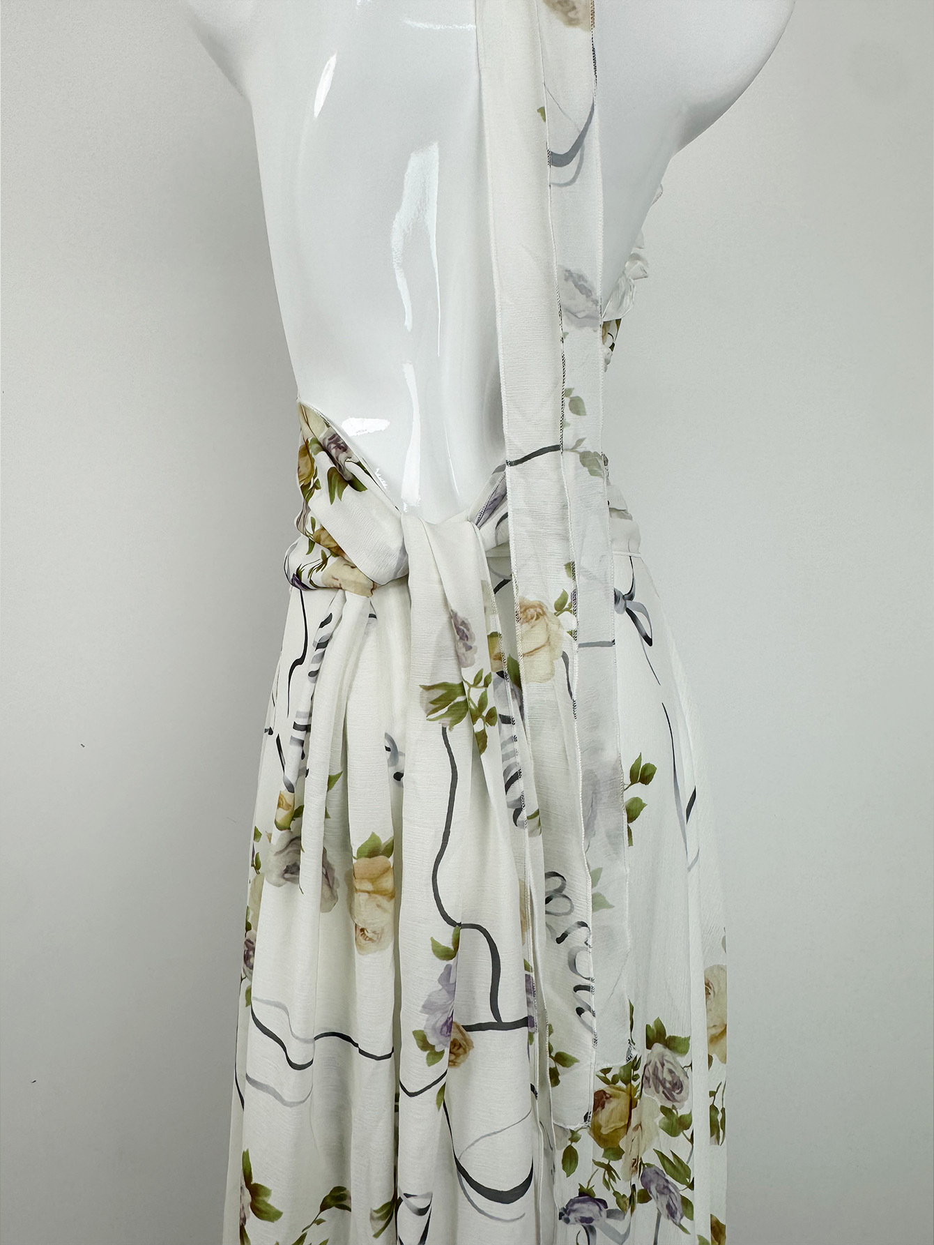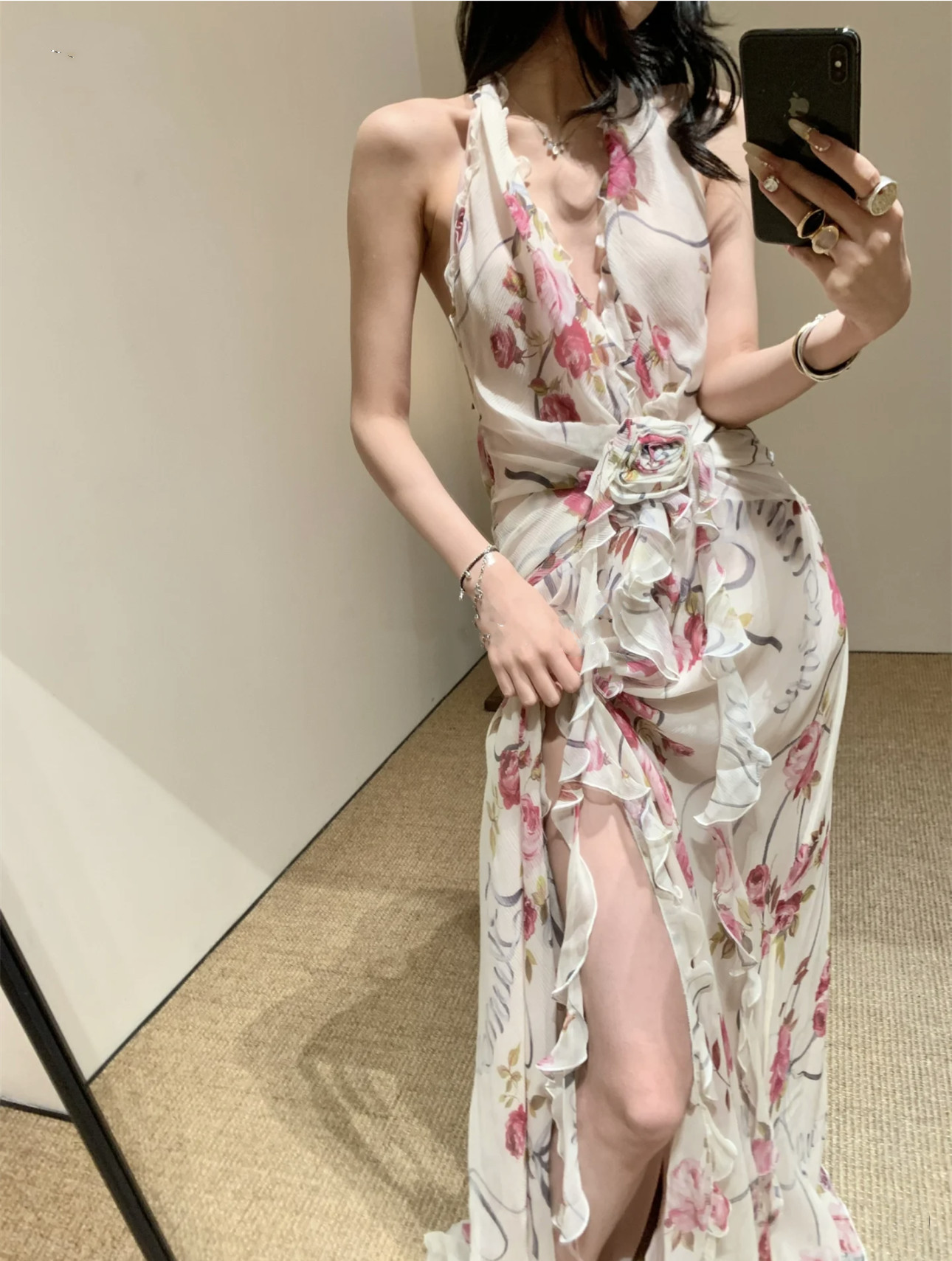 프랑스 스타일 휴가 스타일 V 넥 교수형 목 귀 주름 원피스 쉬폰 3 차원 꽃 백리스 섹시한 저녁 원피스스토어 가기