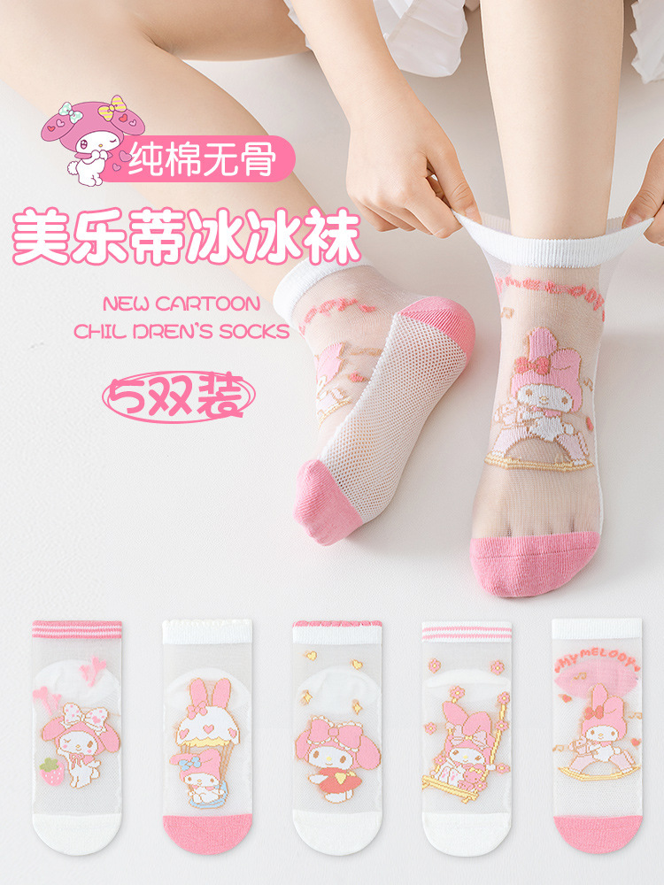 어린이 얼음 스타킹 딸기 토끼 봄과 여름 얇은 스타일 여성 중대형 어린이 통기성 귀여운 폴리 에스터 유행 양말 중대형 어린이 양말 도매스토어 가기