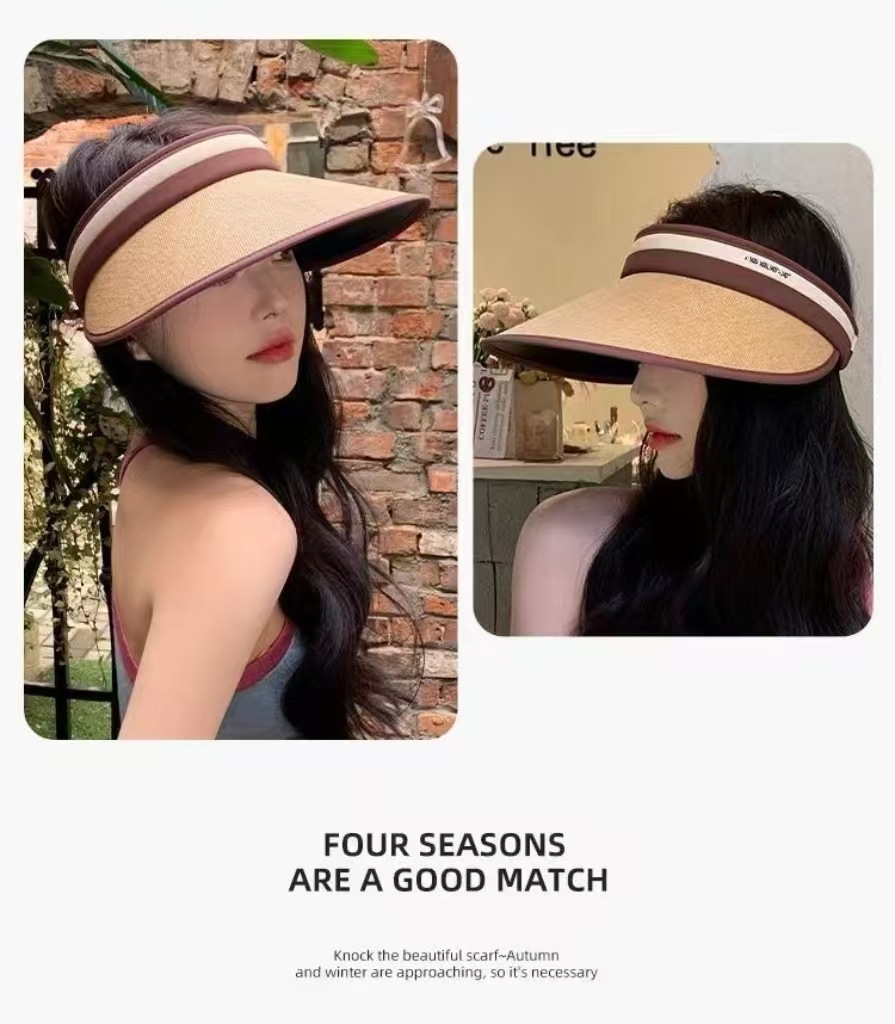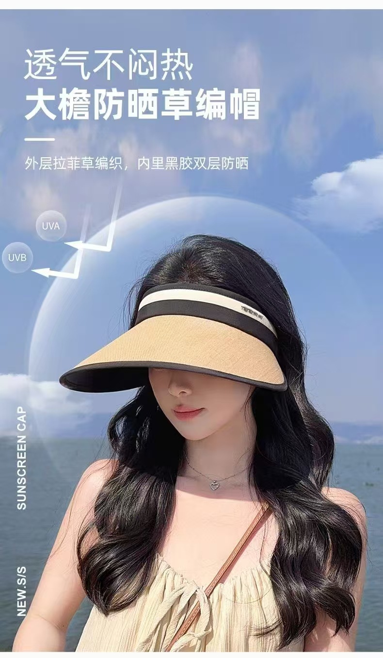 얼굴을 가리는 큰 챙이 있는 여성용 새로운 여름 빈 모자, 자외선 차단, 자외선 차단, 새로운 태양 모자, 밀짚 모자스토어 가기