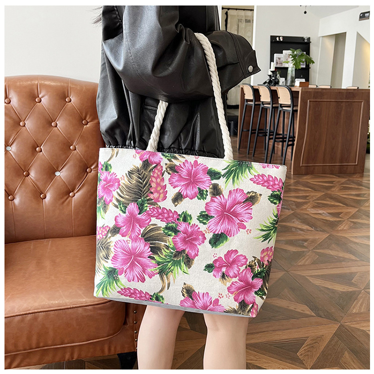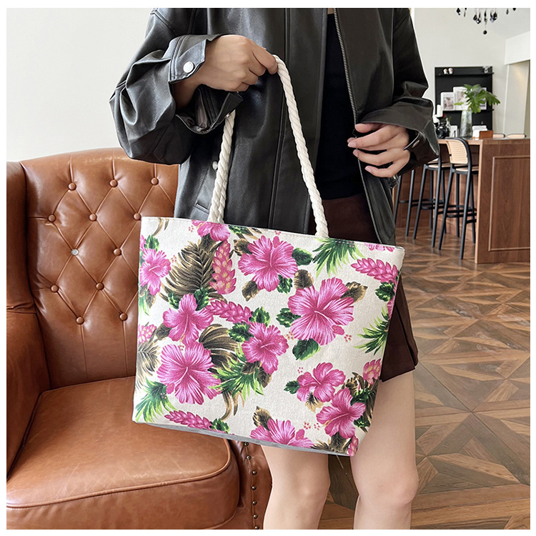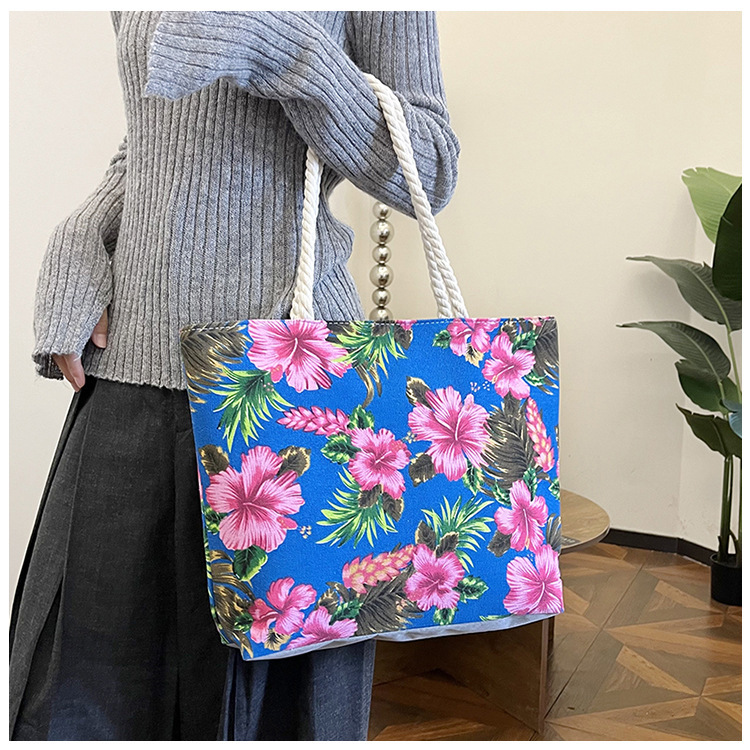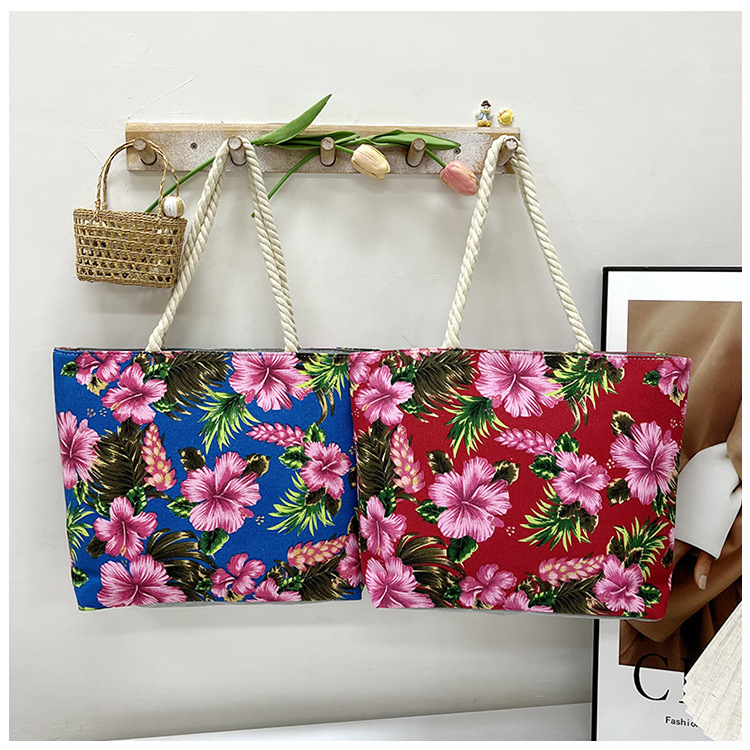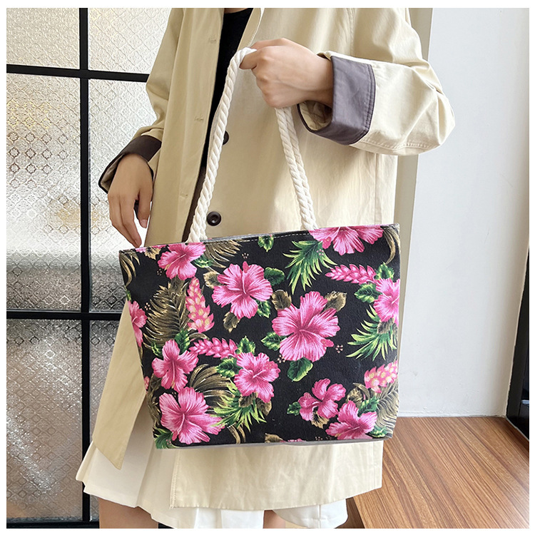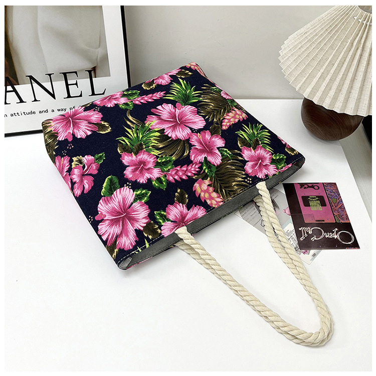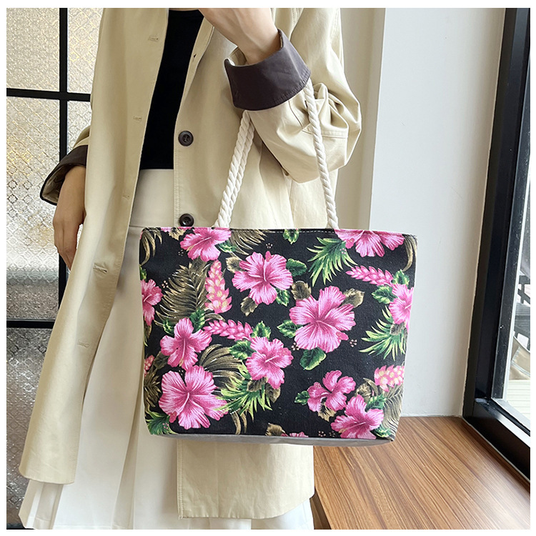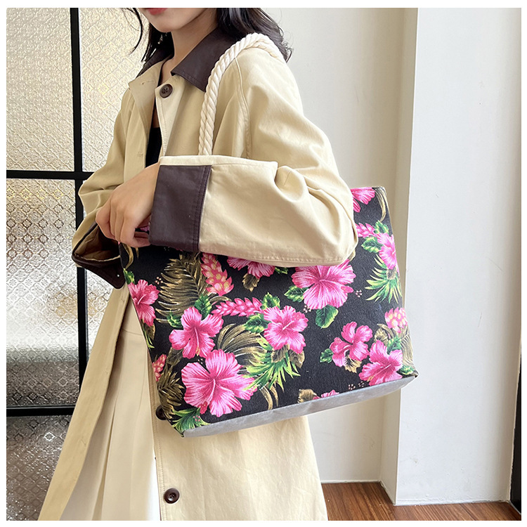 국경 새 토트 백 양면 인쇄 캔버스 가방 꽃 어깨 가방 여성 가방 민족 스타일 대용량 가방 도매스토어 가기