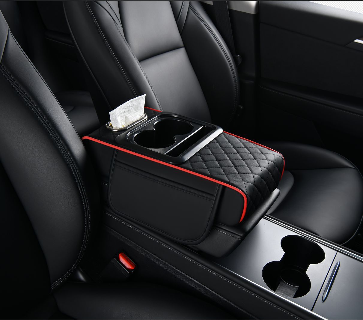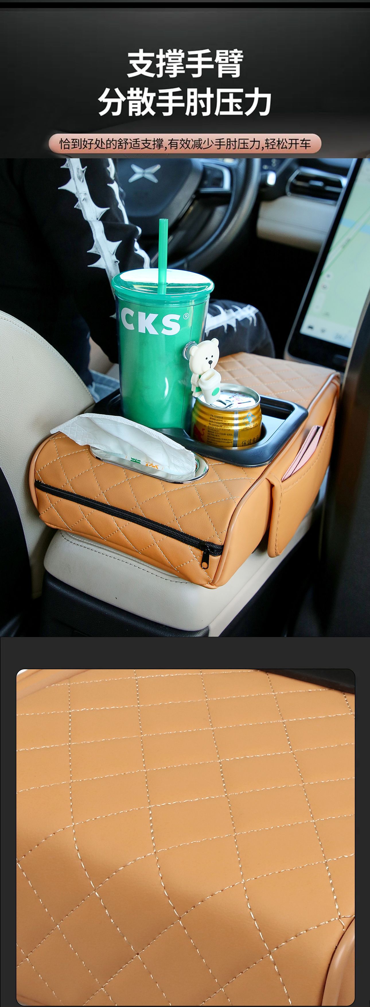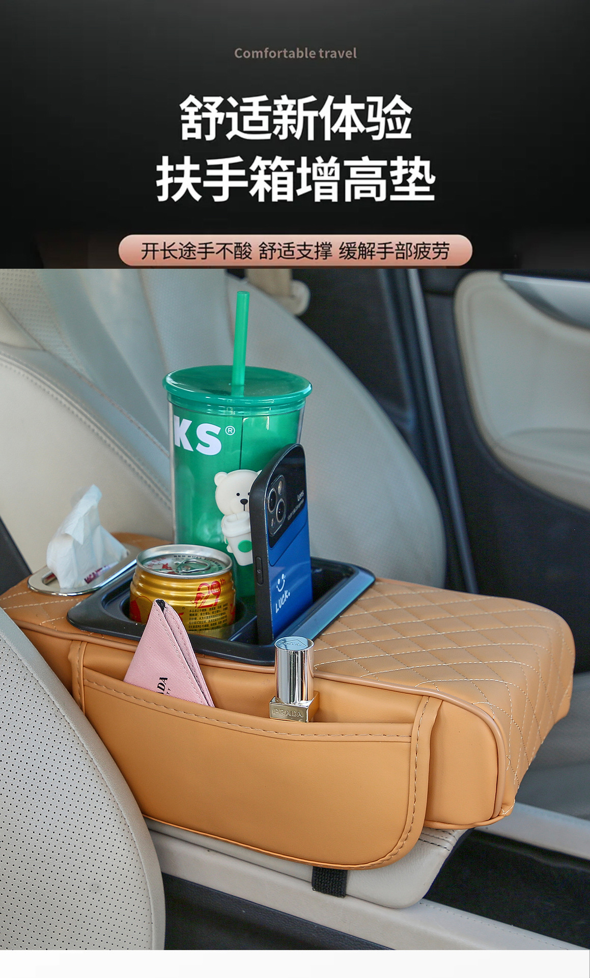 자동차 팔걸이 상자 부스터 패드 고급 감각 중앙 팔걸이 상자 다기능 4 대 1 자동차 티슈 박스 워터 컵 홀더