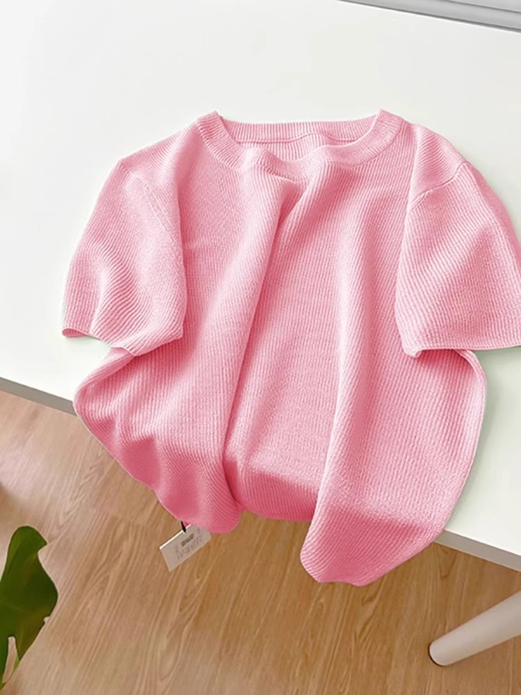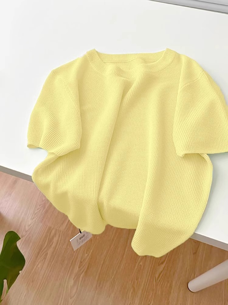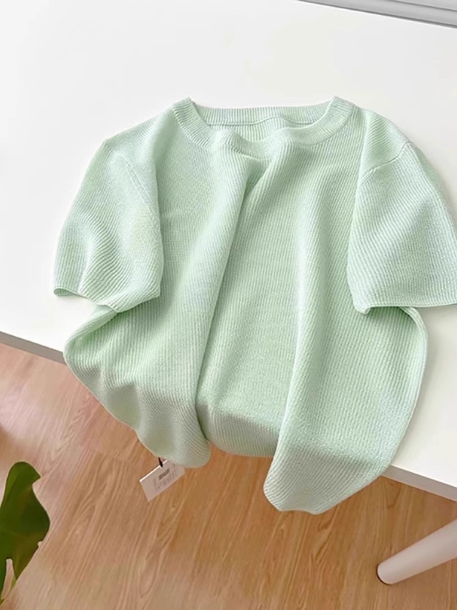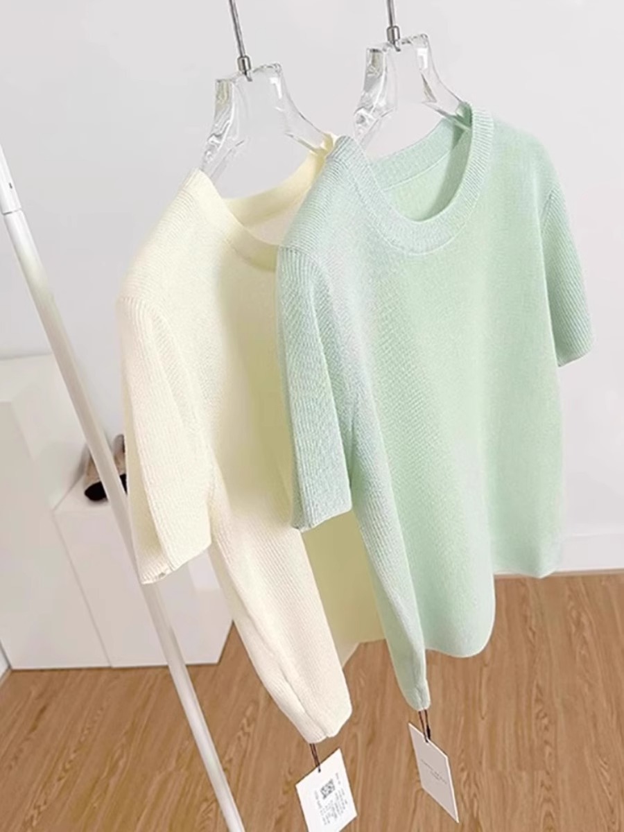 민트 그린 아이스 실크 니트 반팔 티셔츠 여성 여름 2025 새로운 하이 엔드 센스 숄더 티셔츠 쇼트 탑스토어 가기