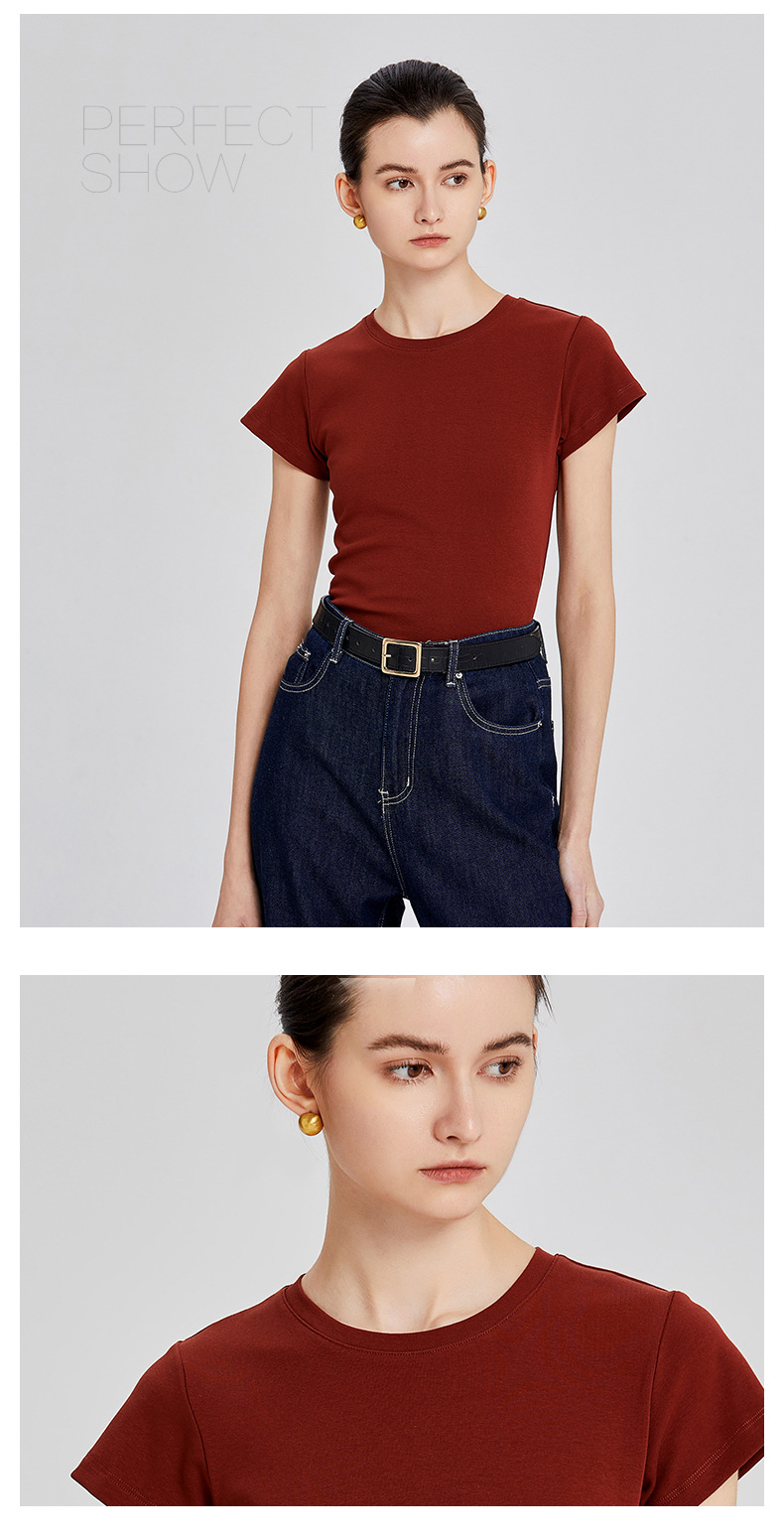 슬림핏 스키니 플라잉 슬리브 숄더 티셔츠 여성의 여름 새로운 디자인 센스 레드 레트로 내부 최고 여성스토어 가기