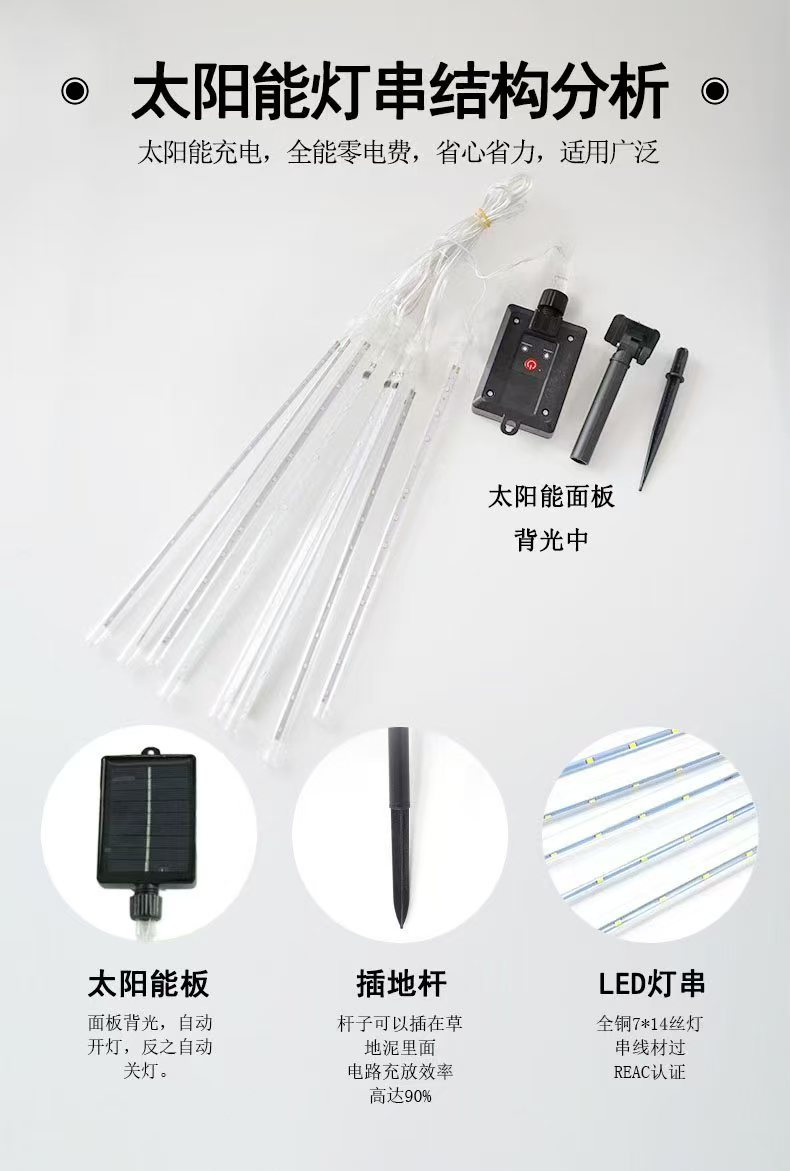 국경 간 LED 태양 유성우 빛 야외 방수 크리스마스 장식 빛 흐르는 물 모양 빛 문자열스토어 가기