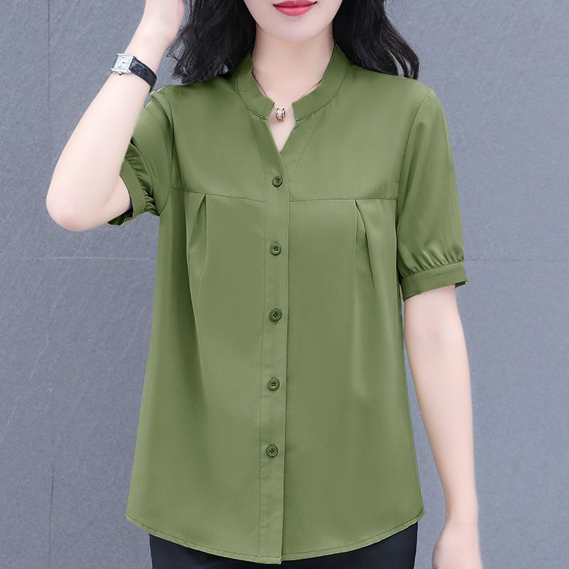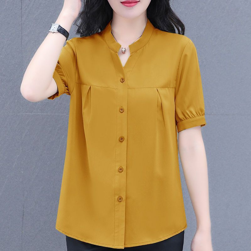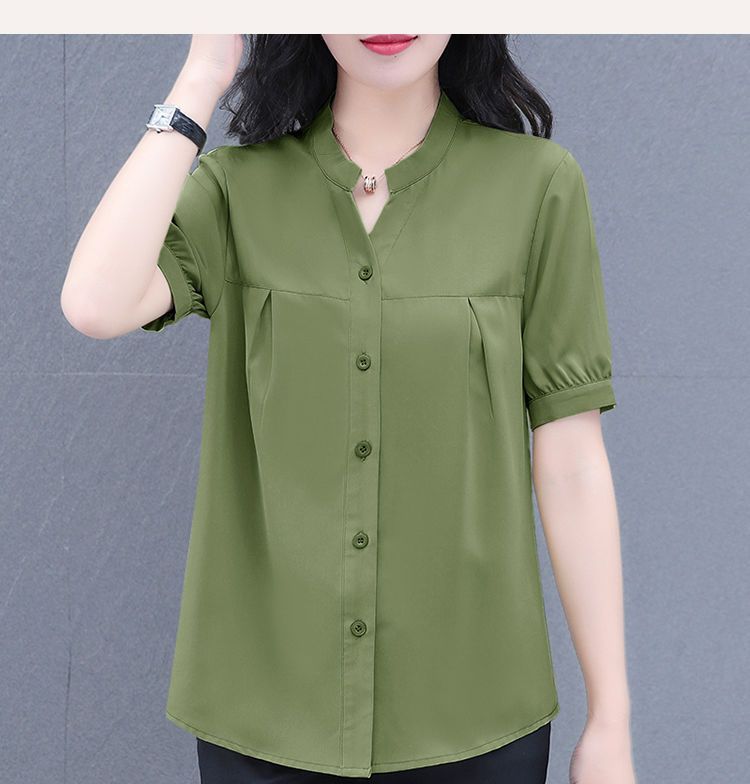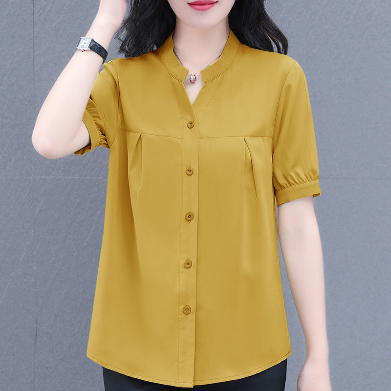 2025 새로운 아이스 실크 통기성 쉬폰 셔츠 얇은 반팔 여성용 셔츠 한국식 패션 올매치 셔츠 여자 올매치스토어 가기
