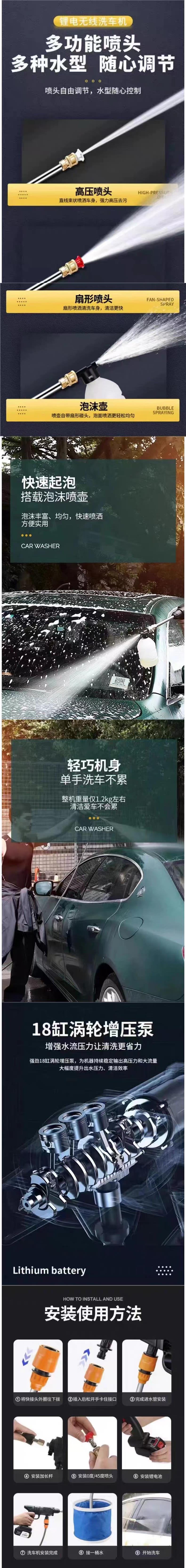 무선 고압 자동차 세척 물 총 고 전력 가정용 휴대용 자동차 세탁기 리튬 배터리 청소 기계 물 총 자동차 세척