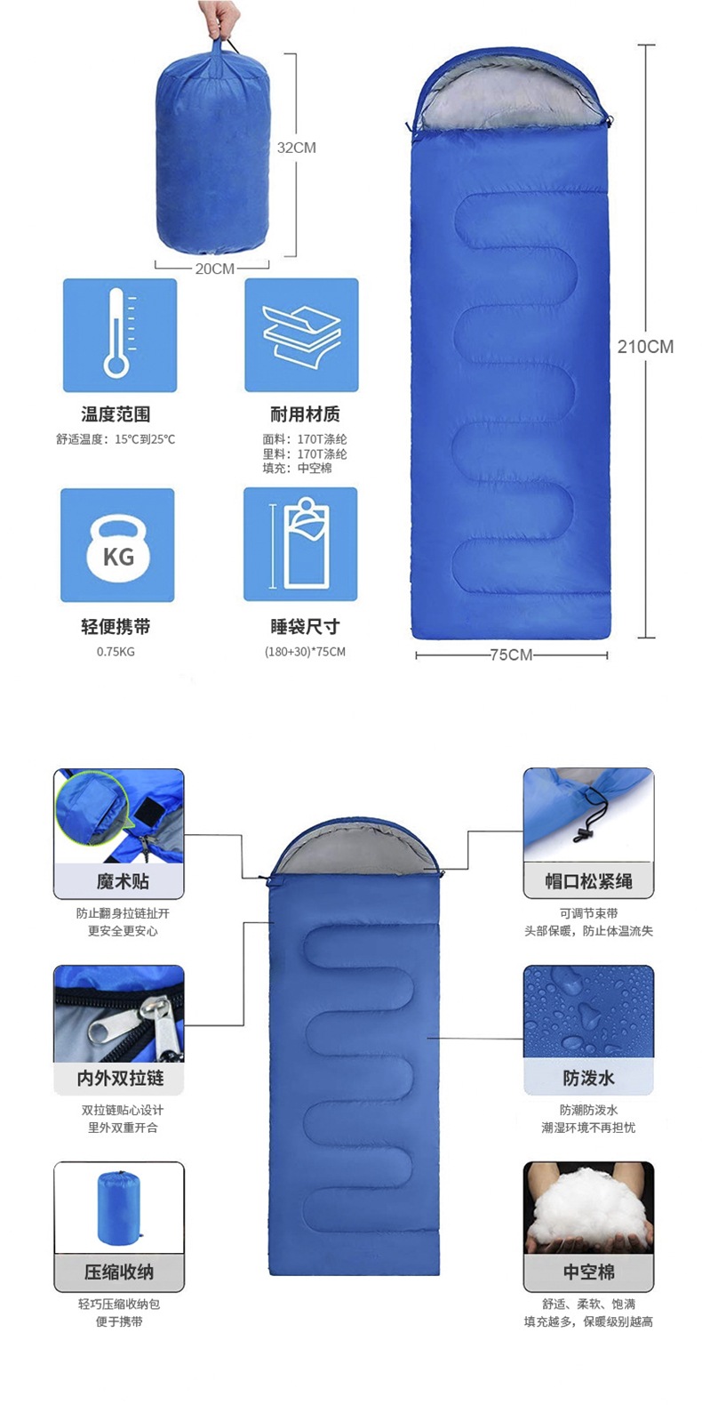레드밀 야외 캠핑 침낭 중공 면 봉투 스타일 야외 텐트 캠핑 침낭 사무실 점심 퀼트