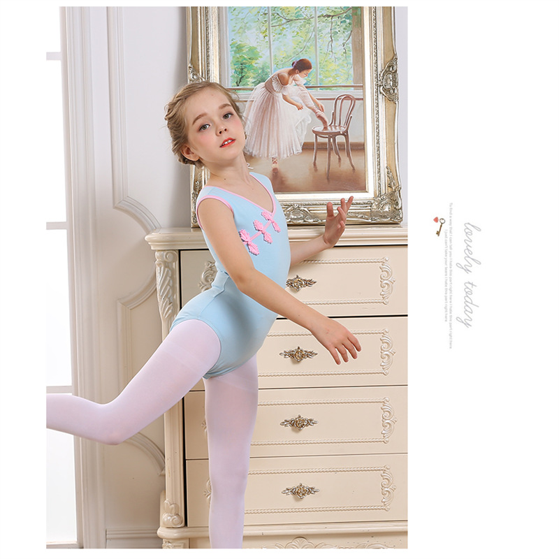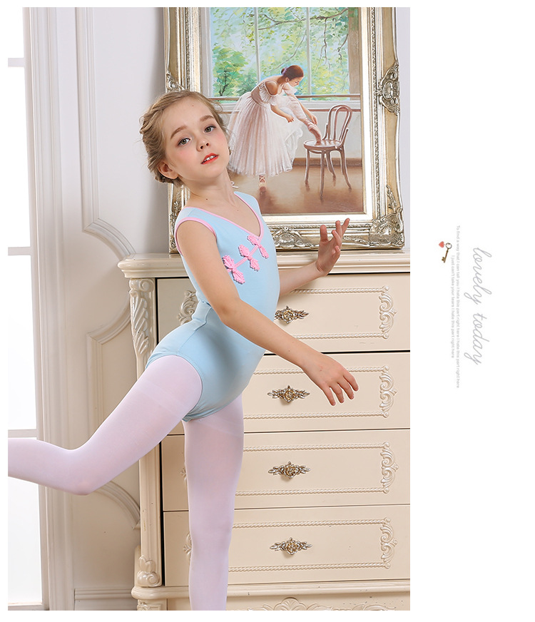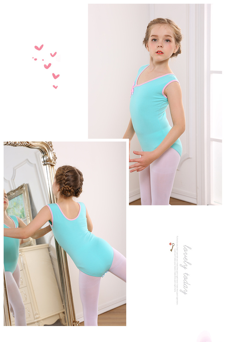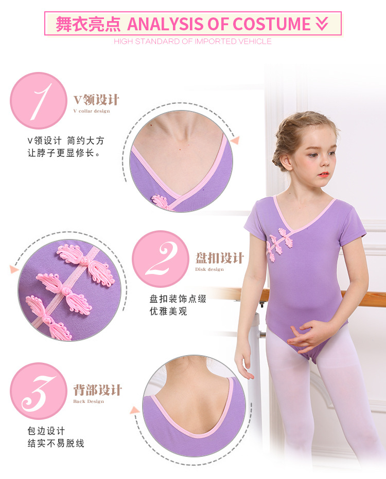 아동용 댄스 의상, 여아 연습복, 여아 여름 반팔 댄스 의상, 중국 무용 민속 무용 연습복
