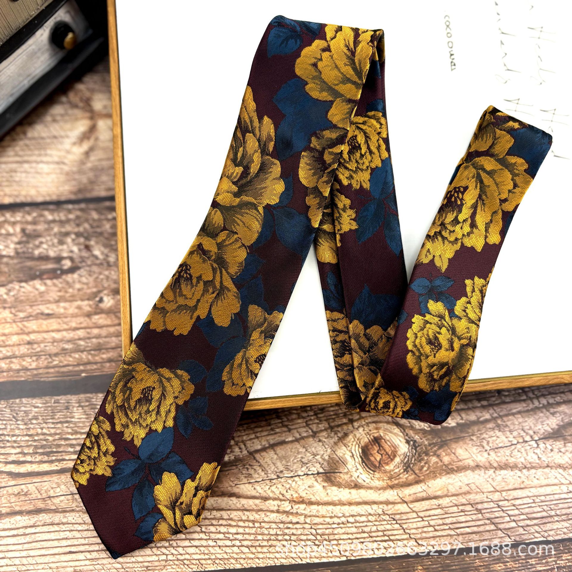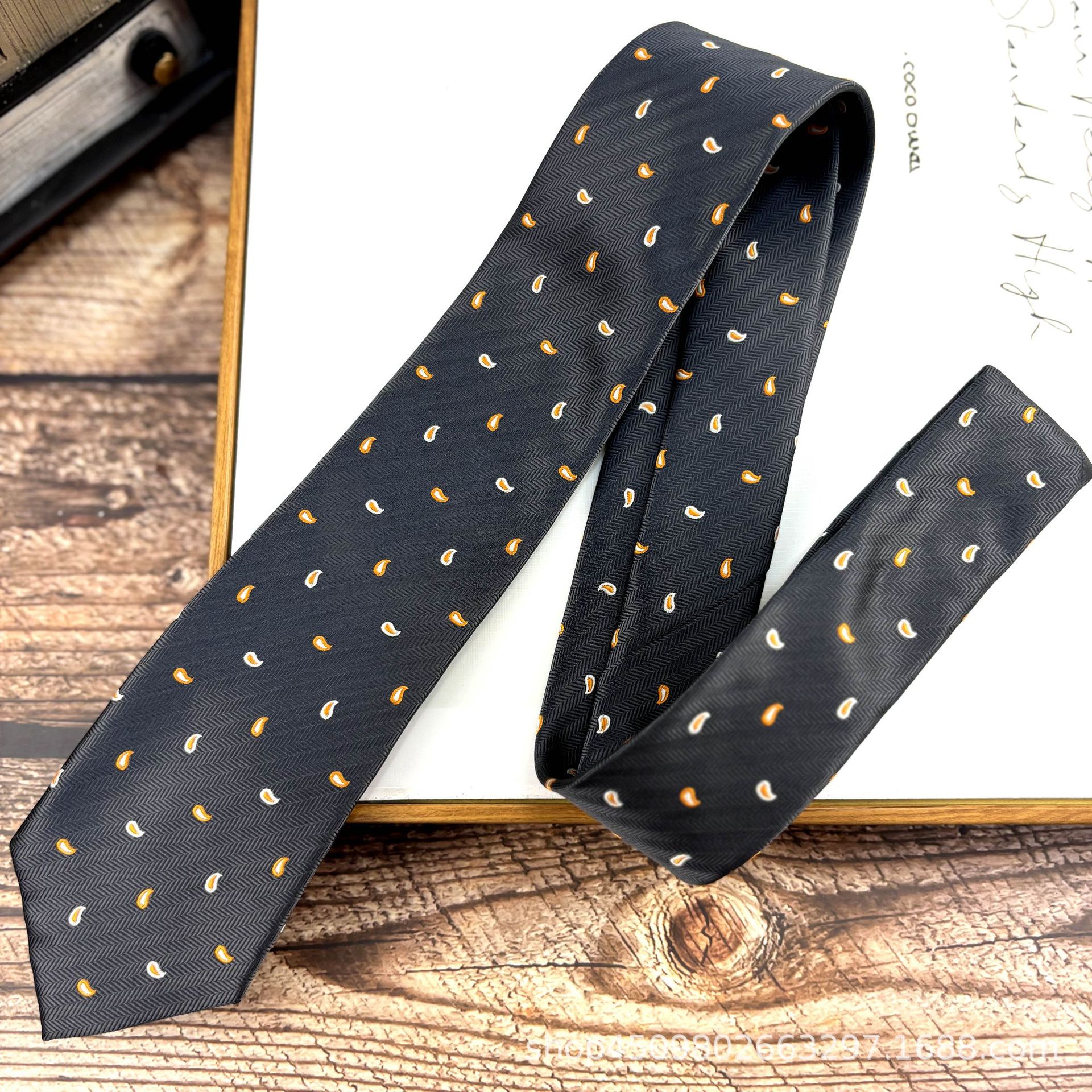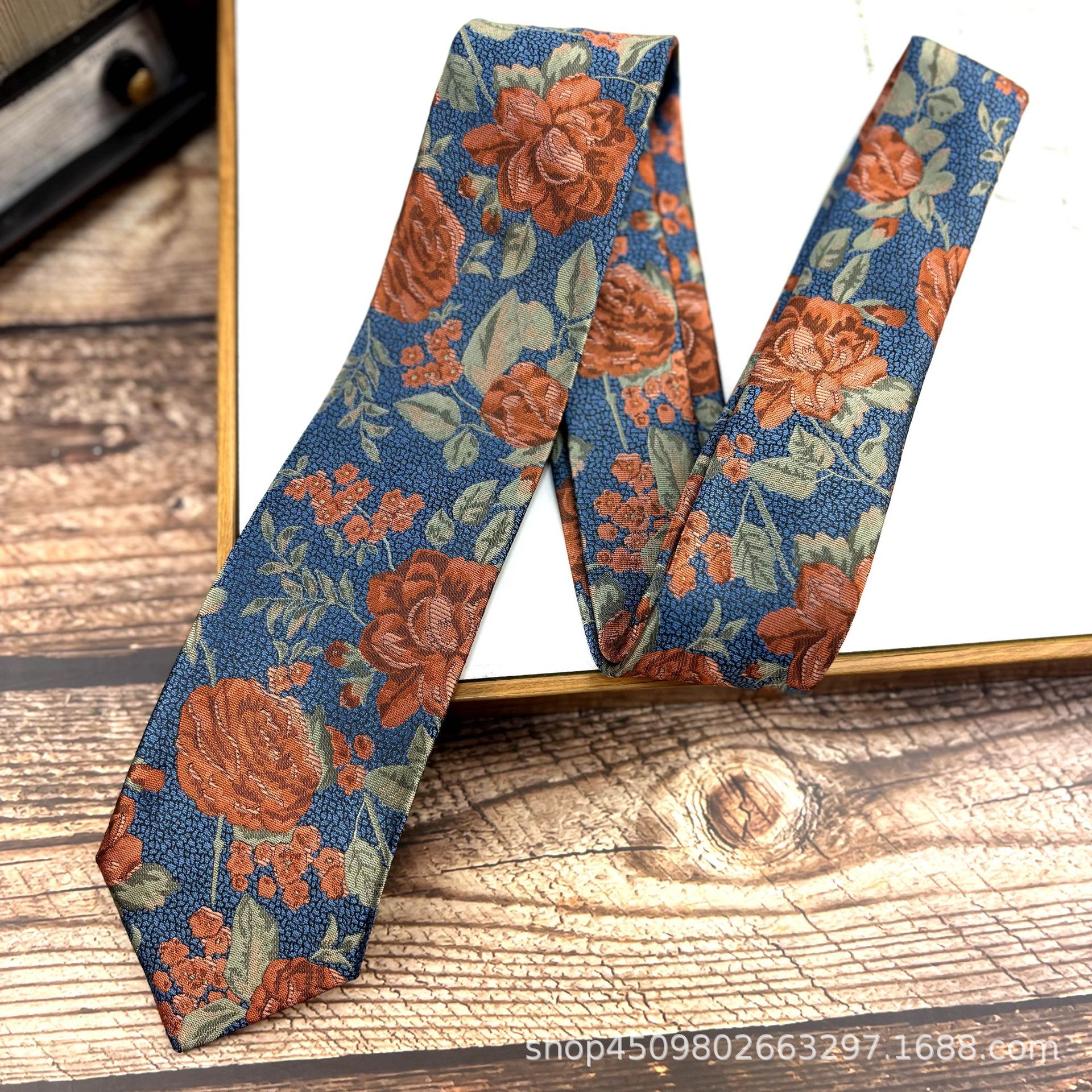 빈티지 오렌지 패턴 넥타이 남자 원피스 빛 럭셔리 신사 7CM 브랜치와 잎 비즈니스 캐주얼 올 매치 한국 스타일 여성스토어 가기