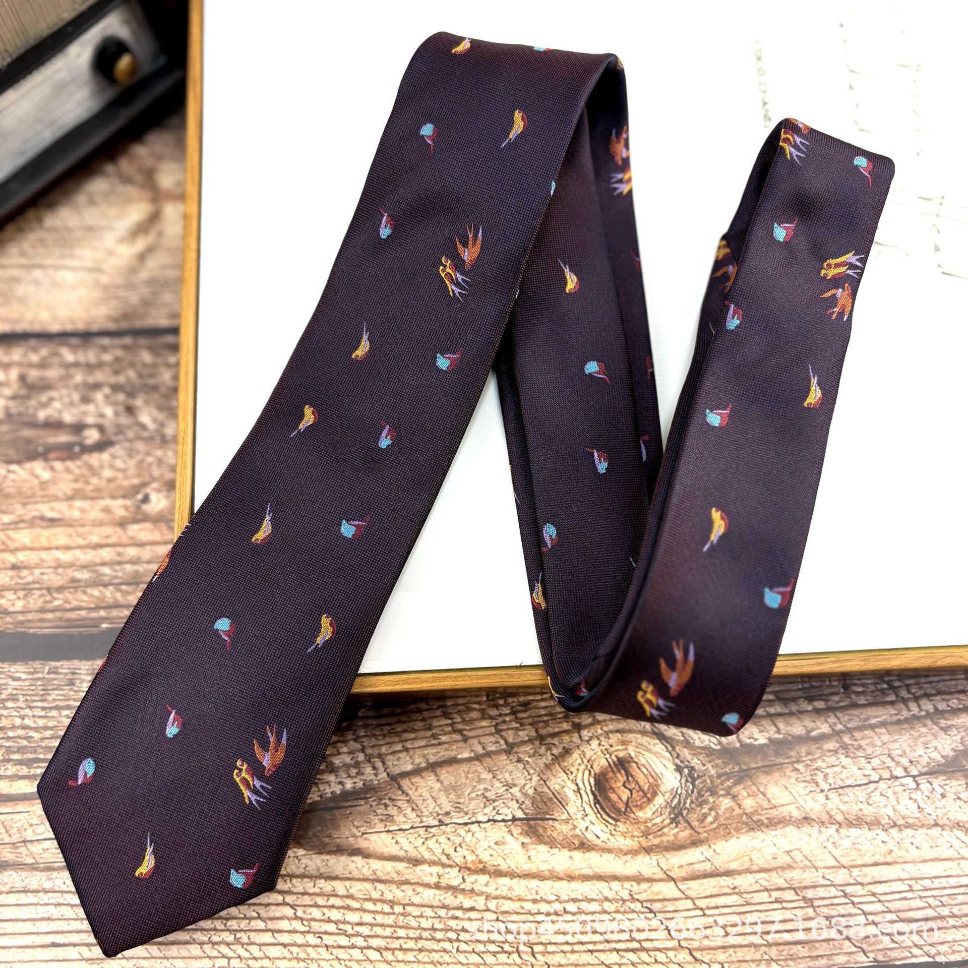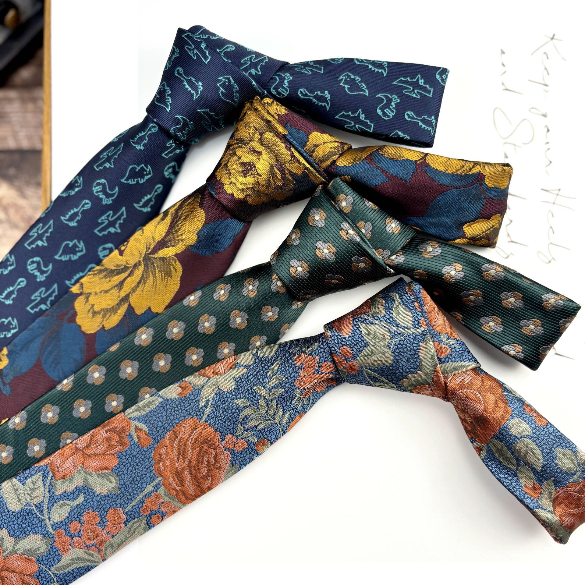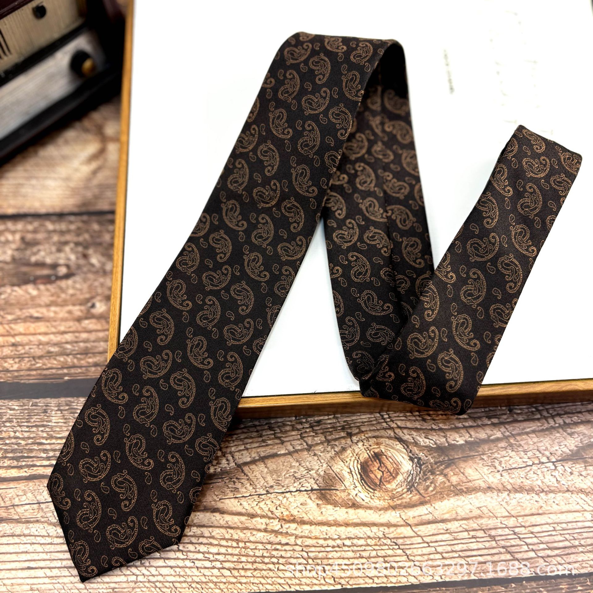 빈티지 오렌지 패턴 넥타이 남자 원피스 빛 럭셔리 신사 7CM 브랜치와 잎 비즈니스 캐주얼 올 매치 한국 스타일 여성스토어 가기