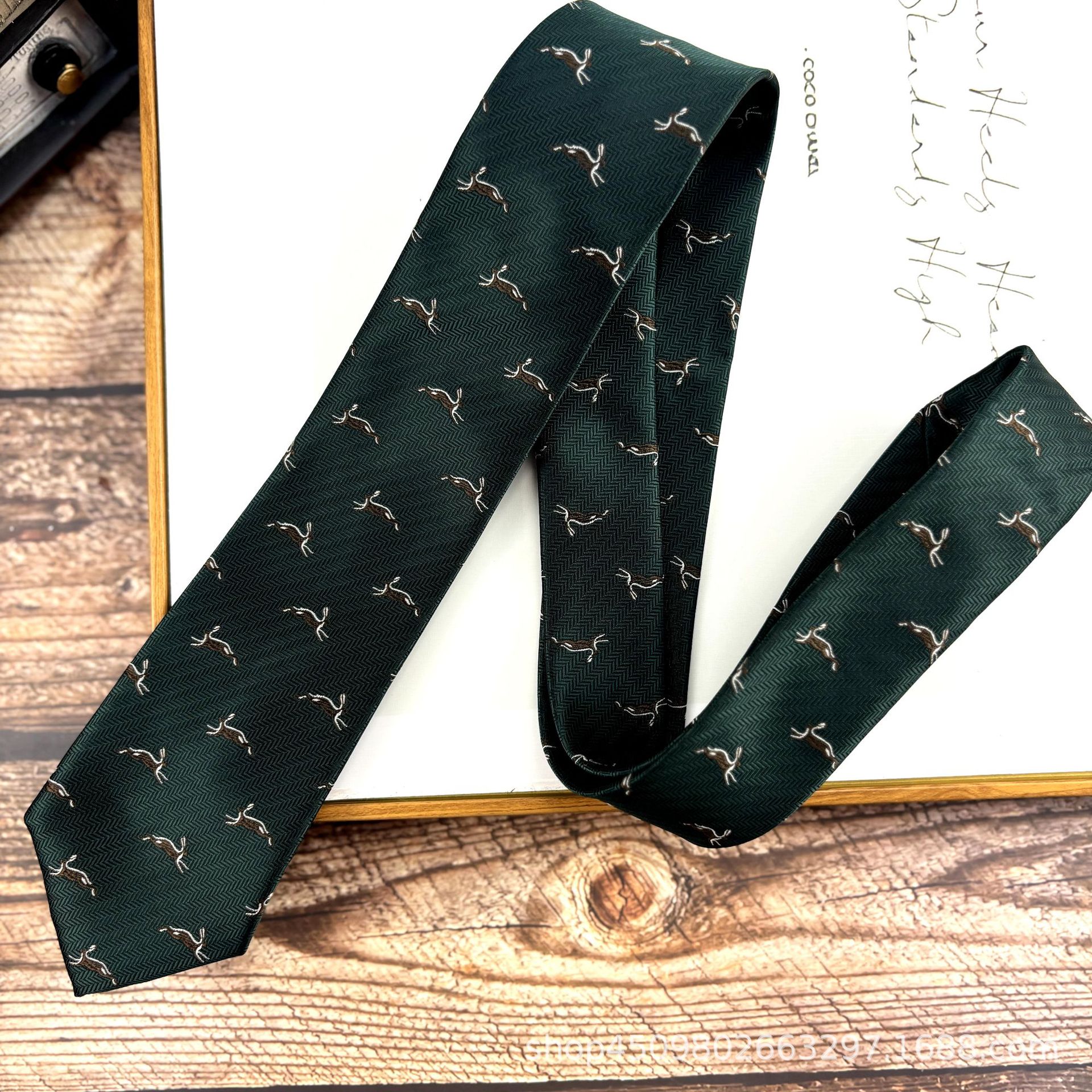 • H38 핸드타이-짙은 녹색 토끼