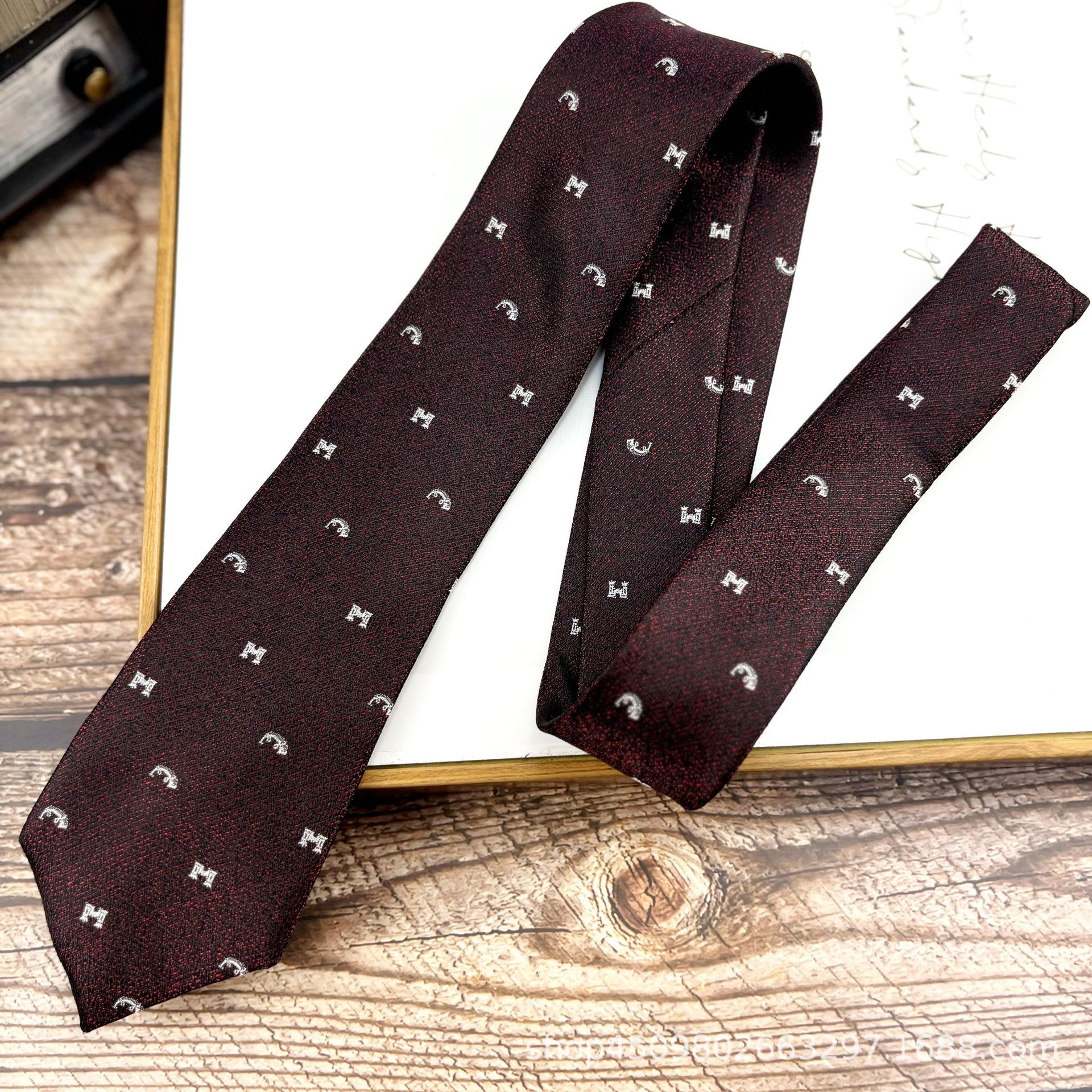 • H9 핸드 타이 버건디 자카드