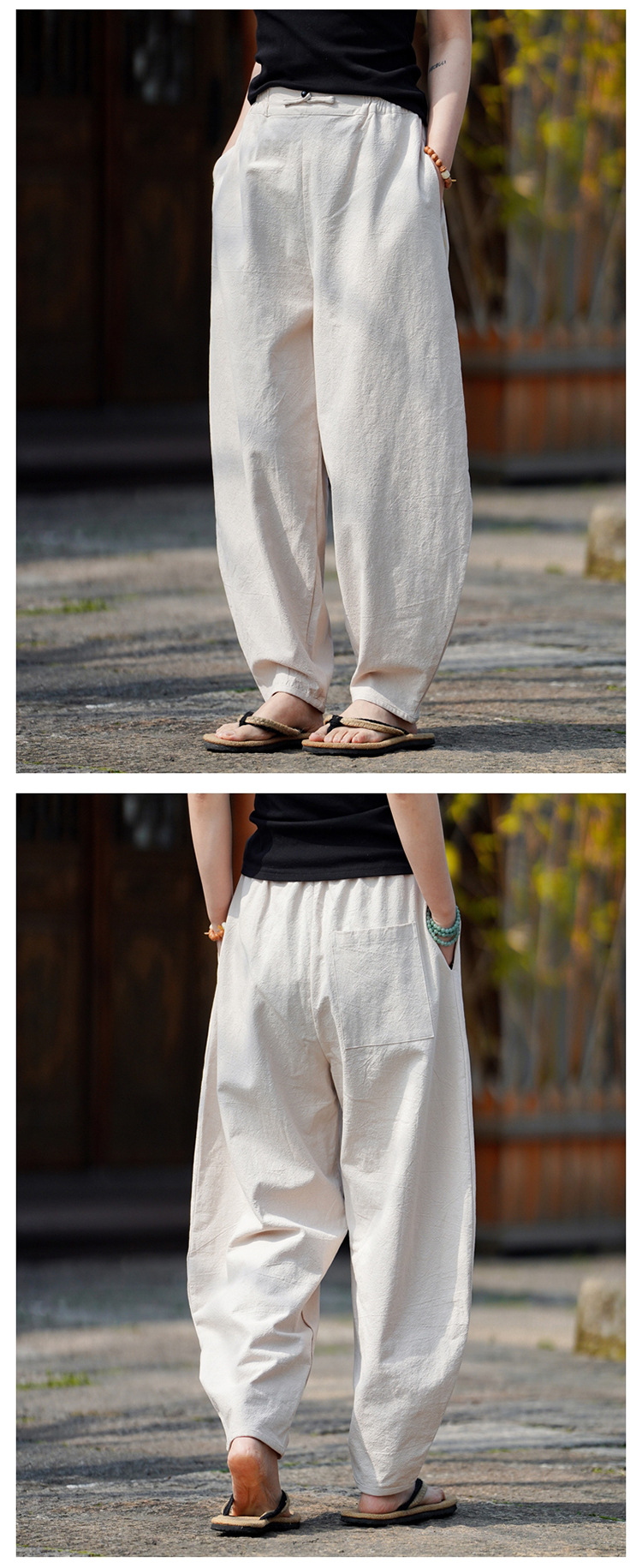중국 스타일 리넨 남성용 바지 봄과 여름 얇은 느슨한 플러스 사이즈 캐주얼 바지 새로운 중국 스타일 와이드 레그 코튼 및 리넨 시미 터 바지스토어 가기