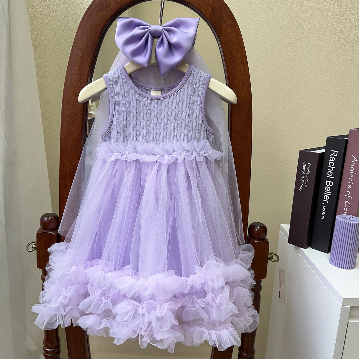 2025 여름 한국 여자 유행 민소매 드레스 아기 조끼 거즈 스커트 보우 공주 스커트