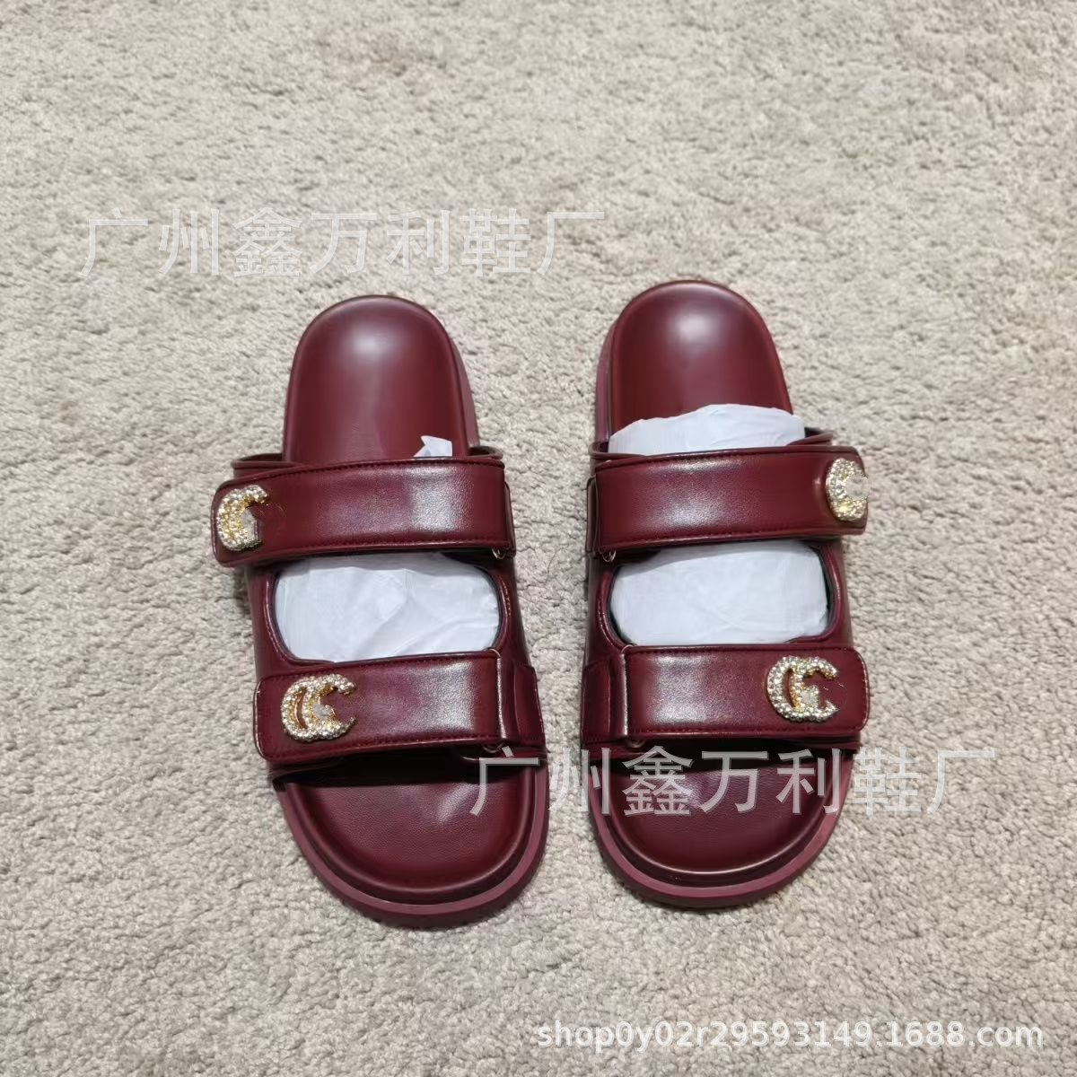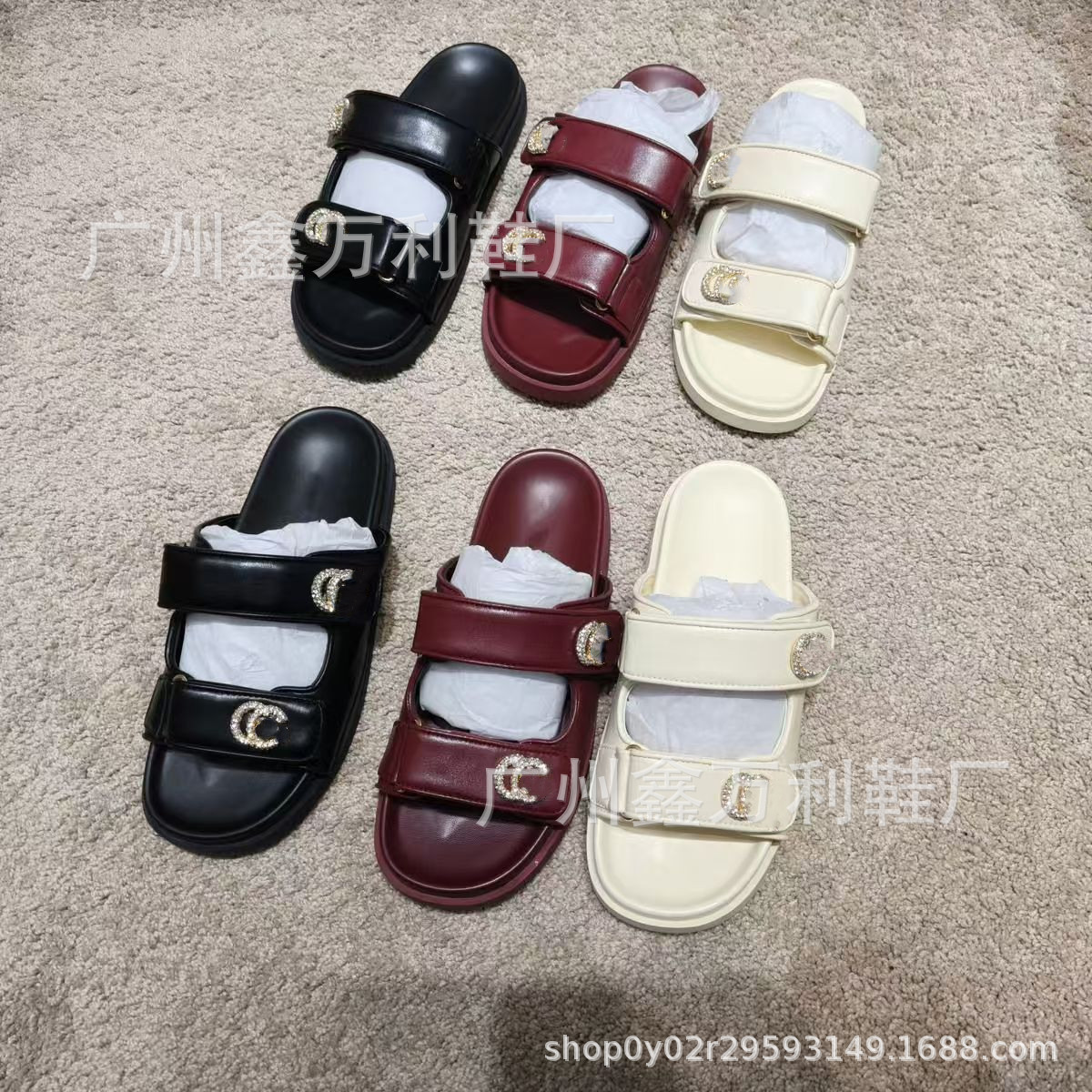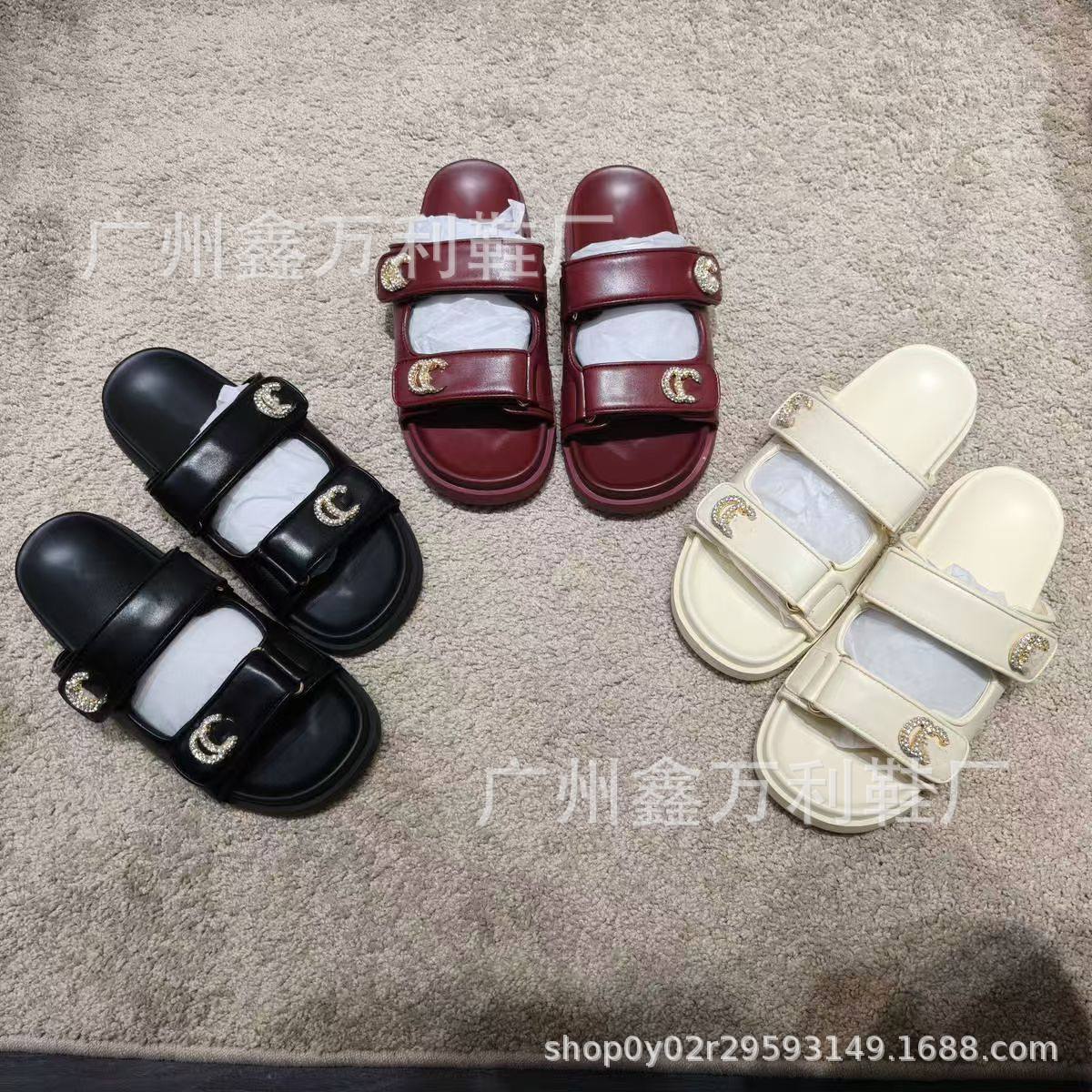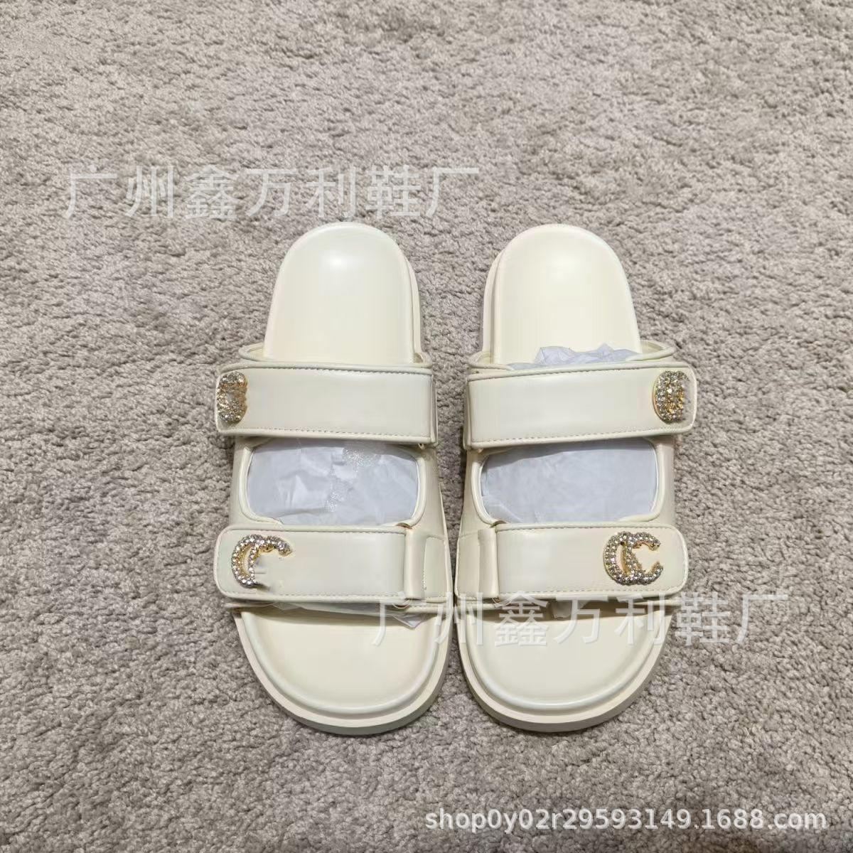ZA2024 가을 새로운 여성 신발 블랙 워터 다이아몬드 장식품 여름 착용 플랫 샌들과 슬리퍼 세련된 슬립 온 비치 신발스토어 가기