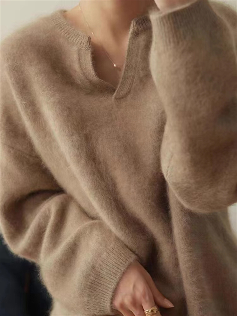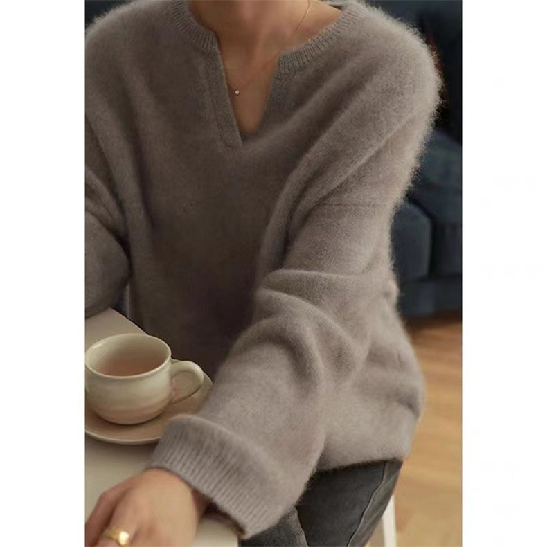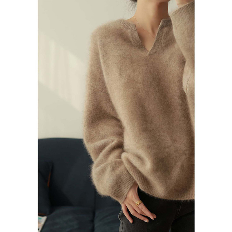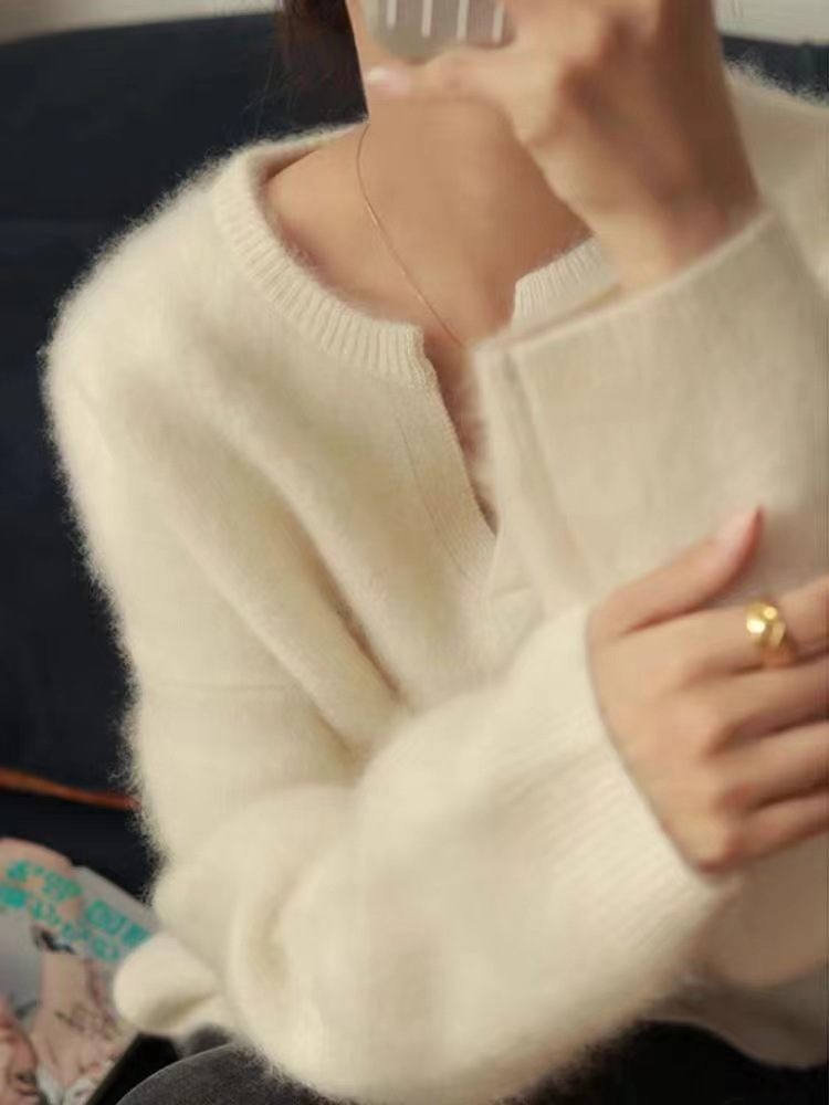아이보리 밍크 양털 스웨터 여성 프랑스 스타일 향기로운 스타일 내벽 니트 풀오버 블라우스 가을 및 겨울 소프트 왁스 젠틀 탑