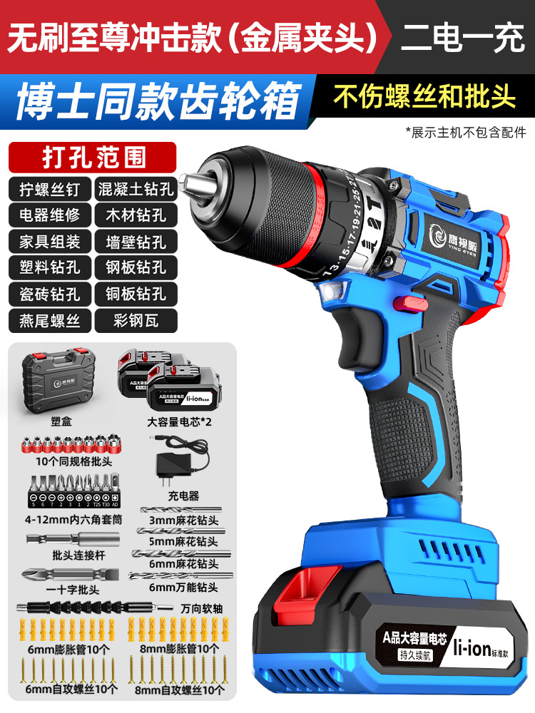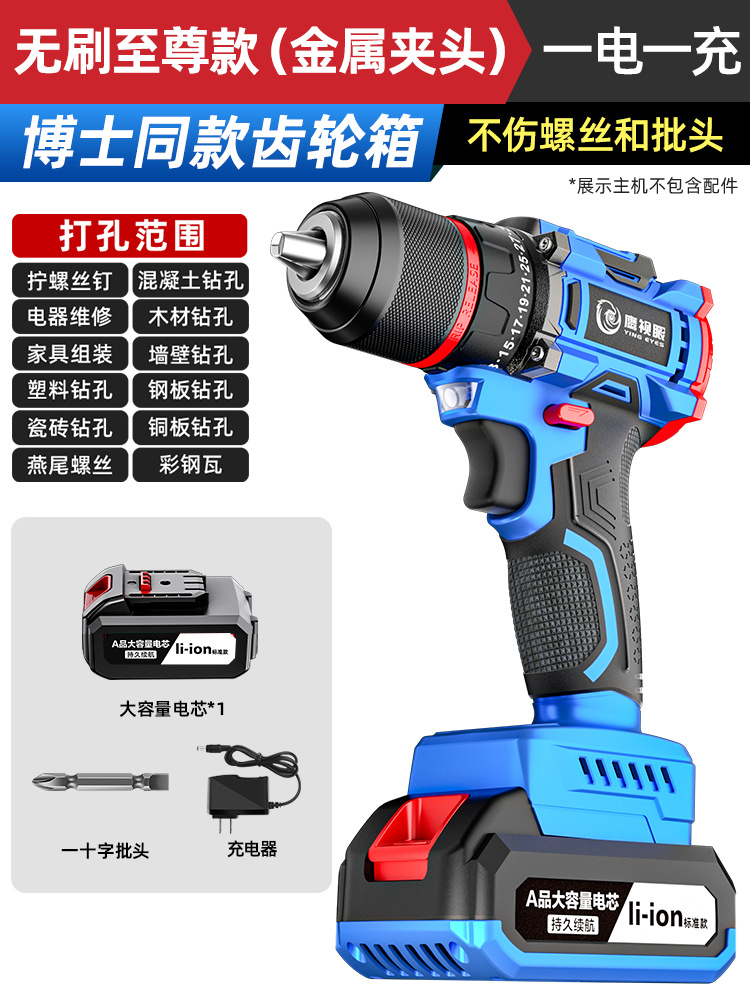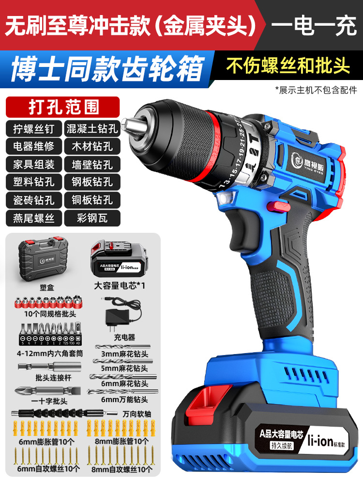 • 브러시리스 슈프림 모델 [자동 잠금 금속 척] 전기 + 비트 1개