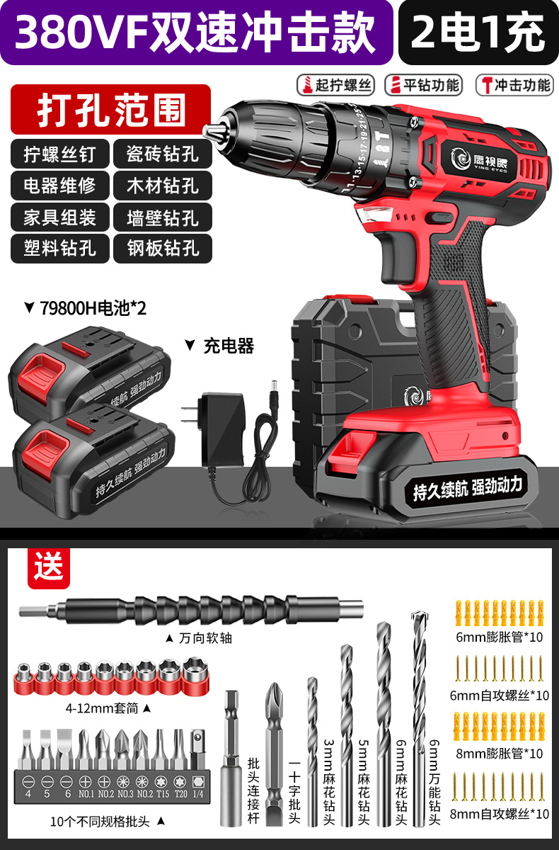 • 380VF [2단 산업용 임팩트 모델] 배터리 2개 + 비트