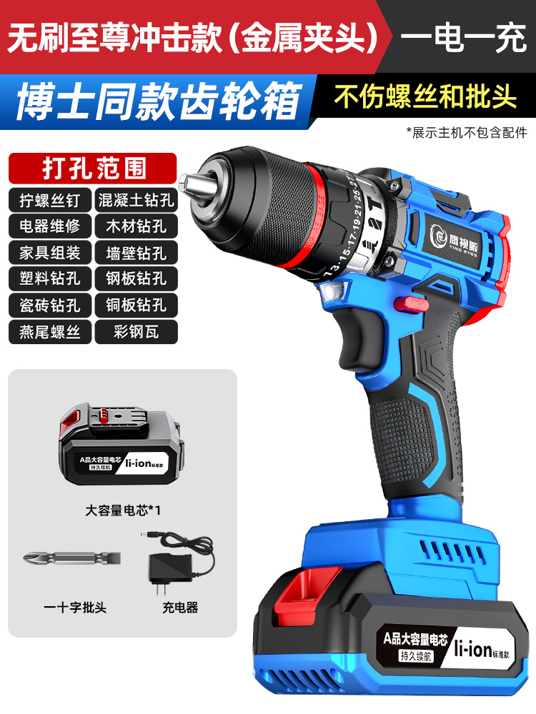 • 브러시리스 슈프림 임팩트 모델 [자동 잠금 금속 척] 전동 + 비트 1개