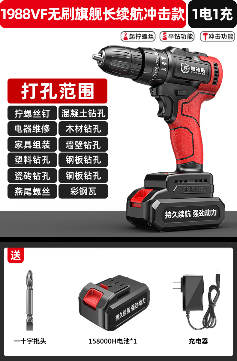 • 1988VF [브러시리스 플래그십 장수명 임팩트 모델] 배터리 1개 + 비트