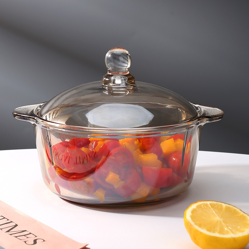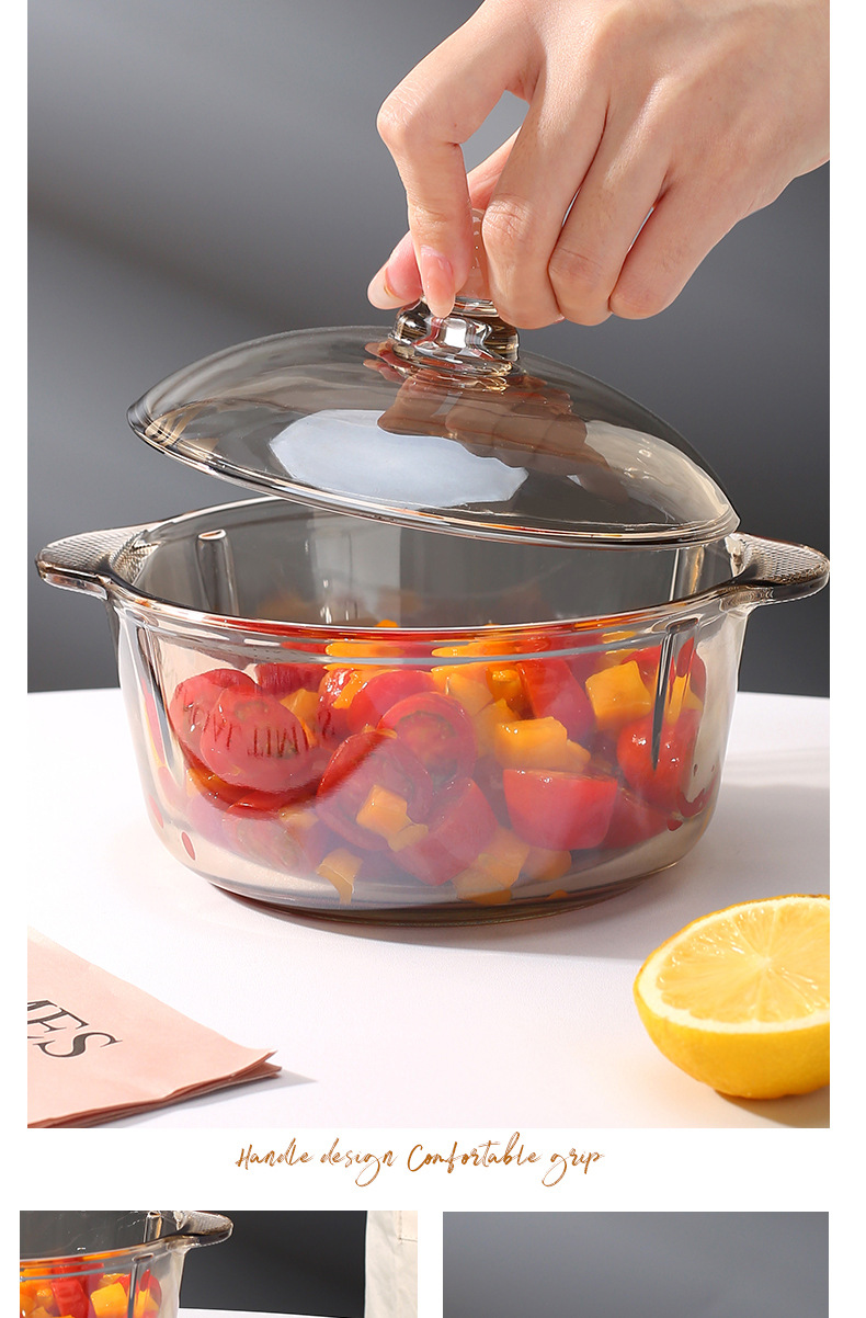 가정용 기숙사 이중 귀 화상 방지 유리 그릇 뚜껑이 있는 유리 냄비 두꺼운 갈색 인스턴트 국수 그릇 수프 그릇 과일 및 야채 그릇