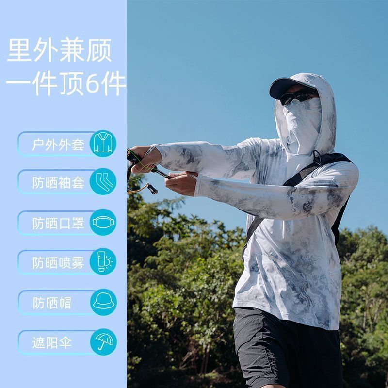 선스크린 의류 선스크린 바지 세트 남자 여름 아이스 실크 통기성 빠른 건조 야외 루야 낚시 세트 여름 통기성 선 스크린스토어 가기