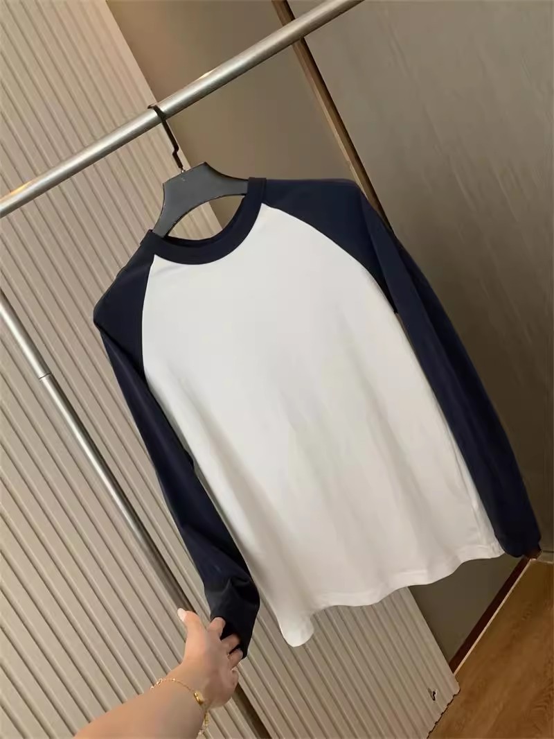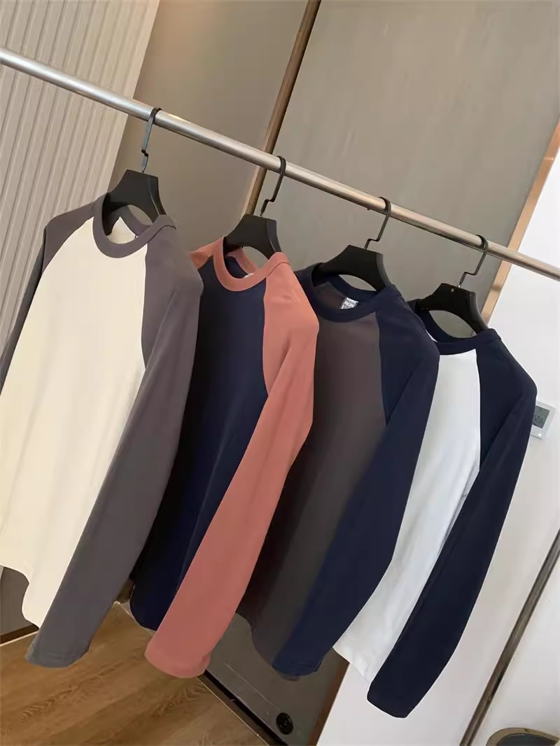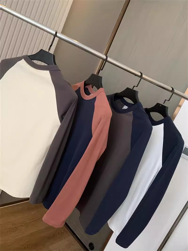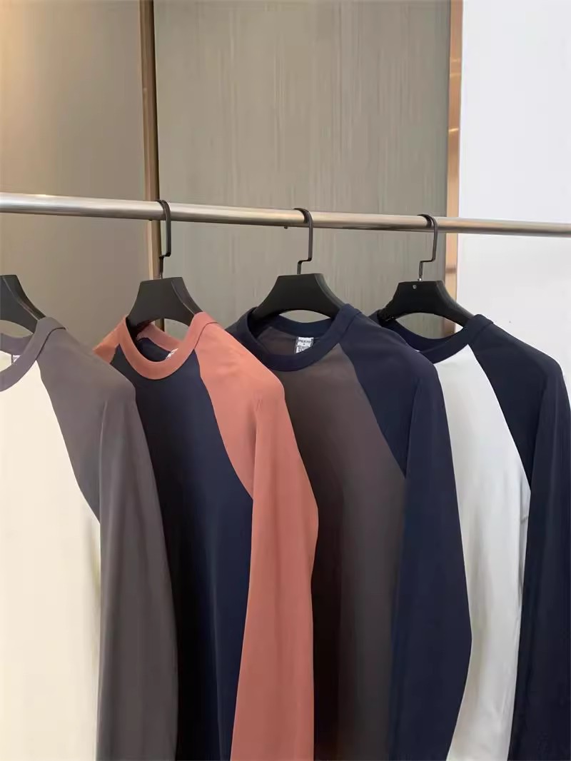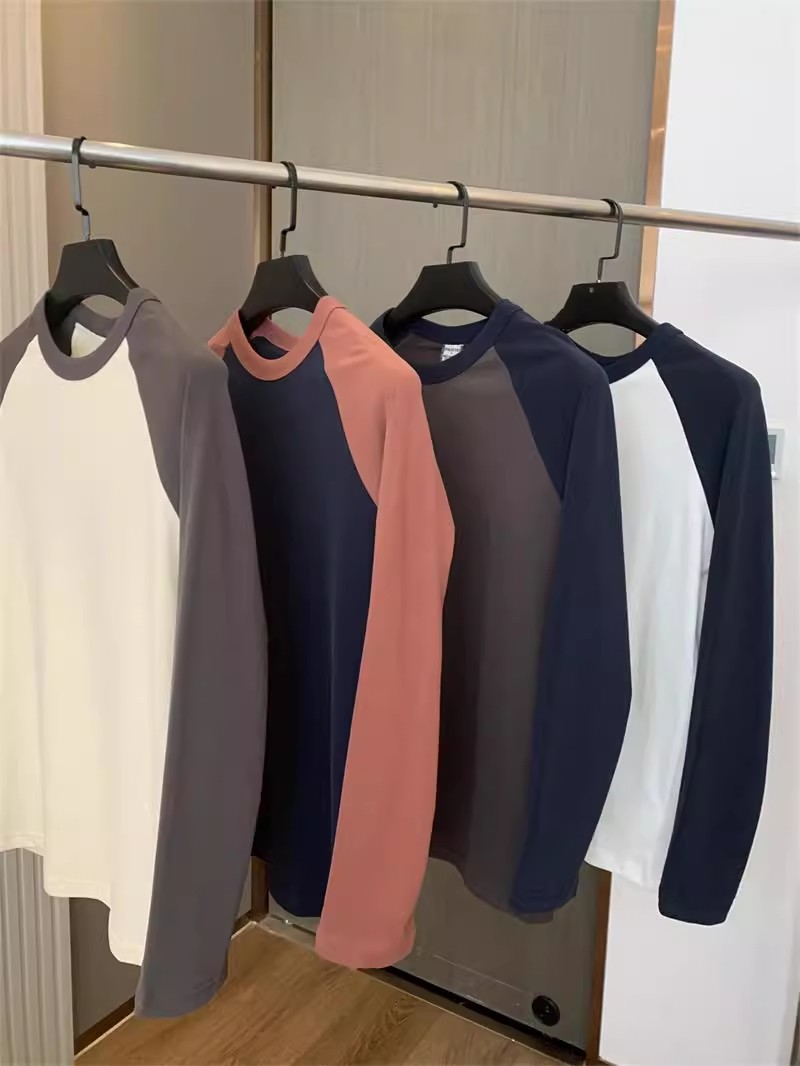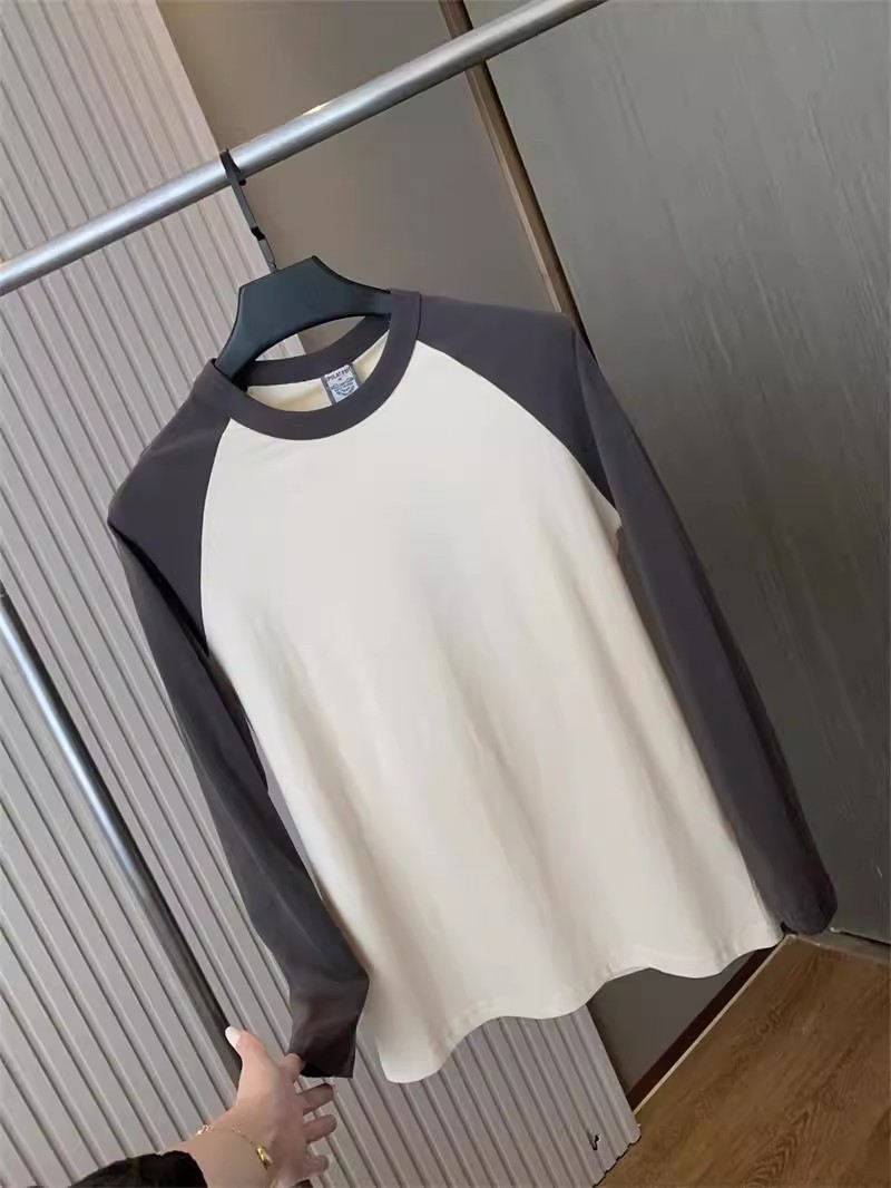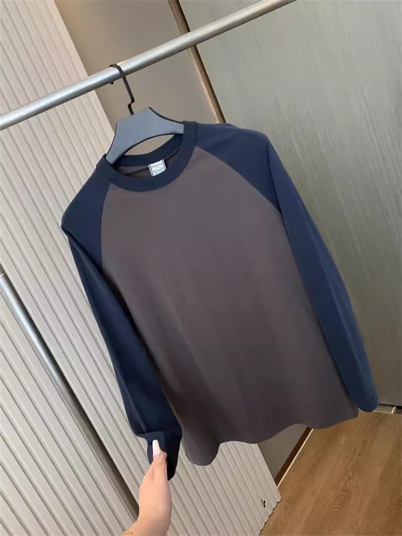 너무 편안합니다! 편안한 샌딩 면! 3 차원 색상 대비! 새로운 남자의 둥근 목 면화 기지 긴 소매 티셔츠스토어 가기