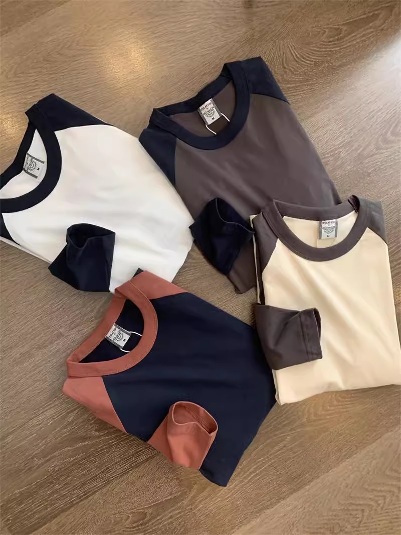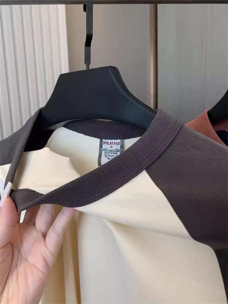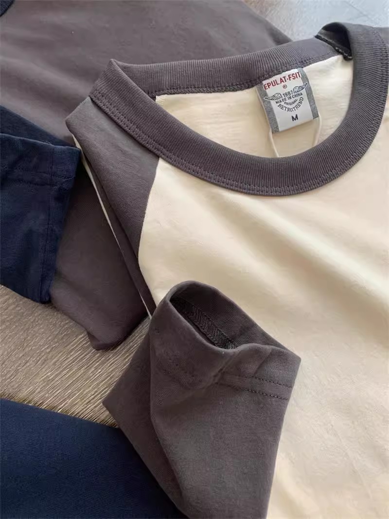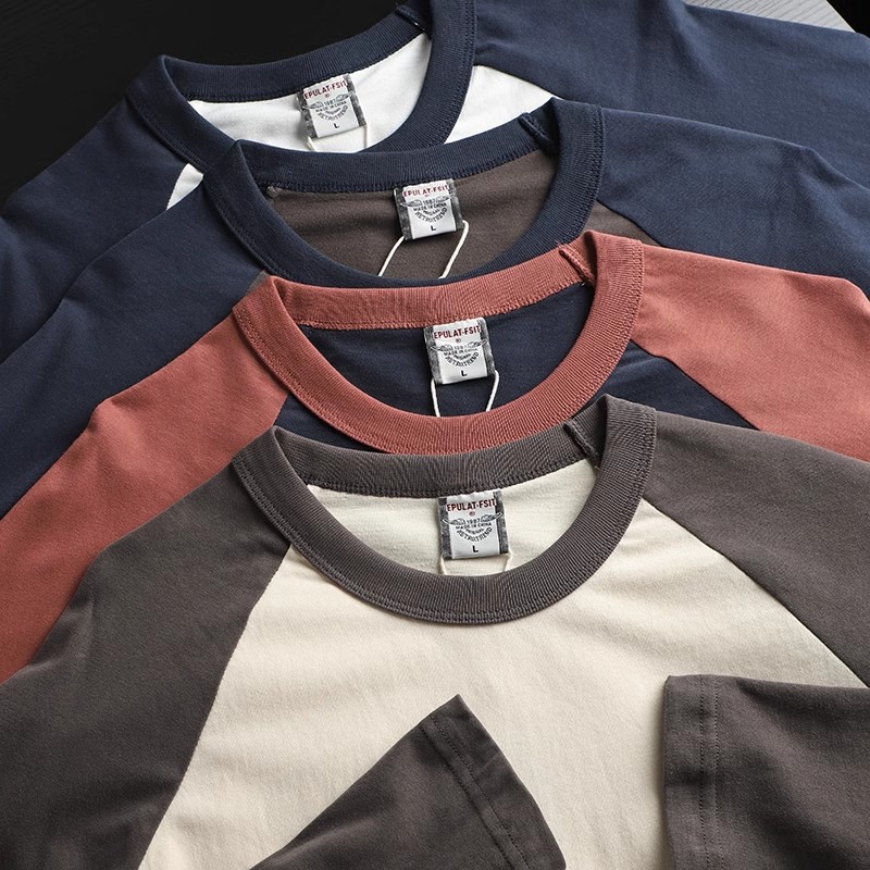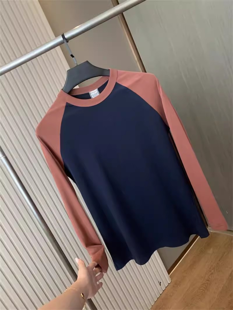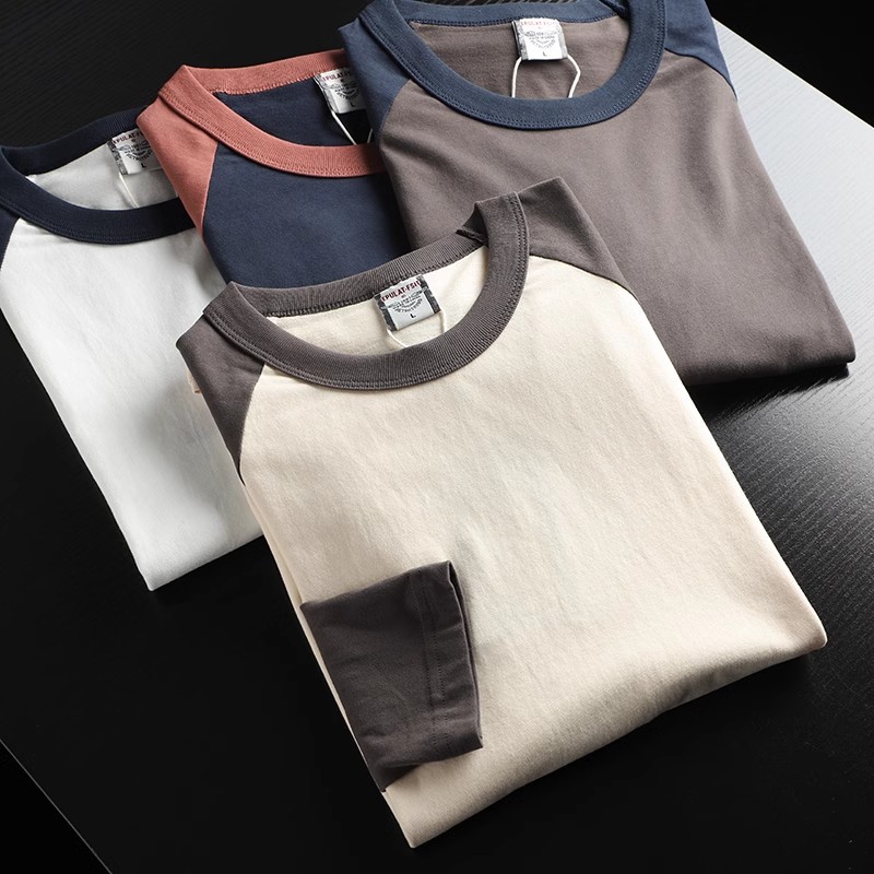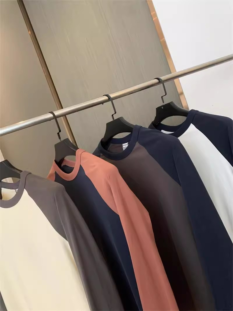 너무 편안합니다! 편안한 샌딩 면! 3 차원 색상 대비! 새로운 남자의 둥근 목 면화 기지 긴 소매 티셔츠스토어 가기