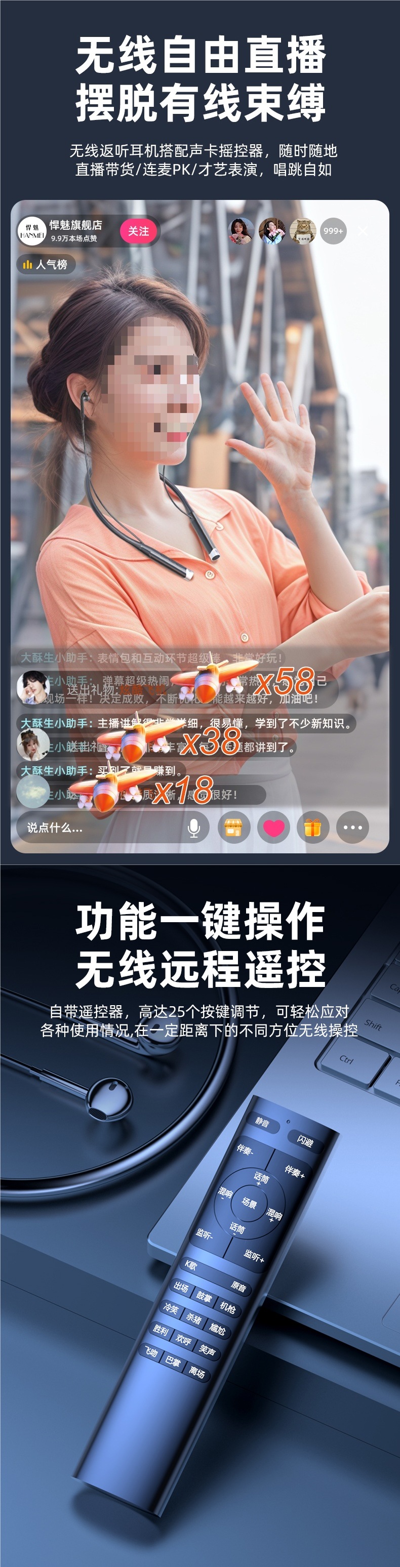 • 고급 버전 [Apple Android 컴퓨터] 무선 사운드 카드 헤드셋 + 리모콘