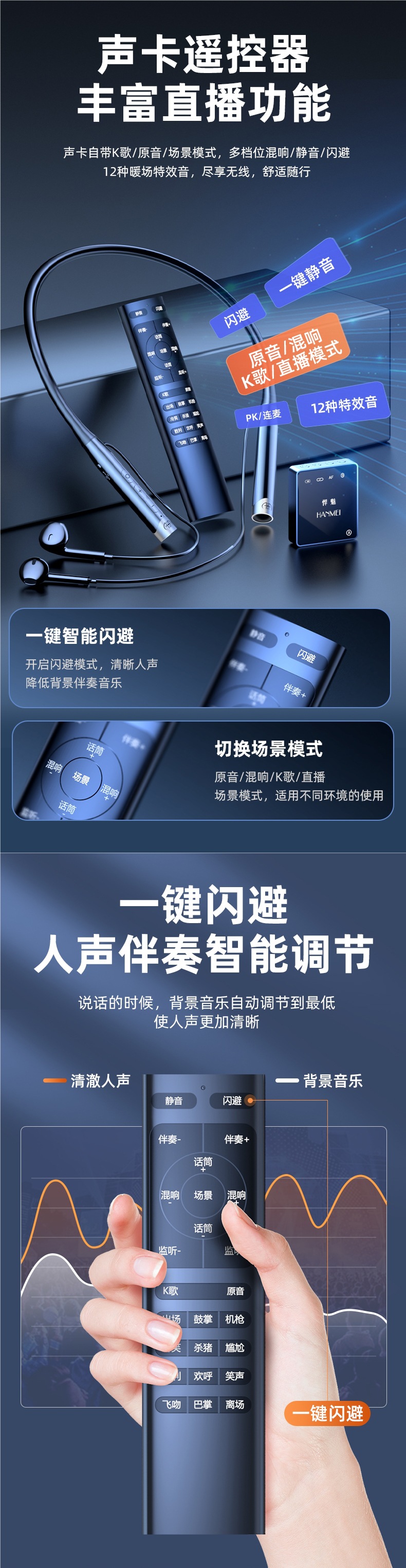 • 【듀얼 플랫폼 라이브 방송 지원 ★ 컴퓨터와 휴대폰을 통한 라이브 방송 또는 반주 ★ 사운드카드, 헤드셋, 마이크 일체형 기기]