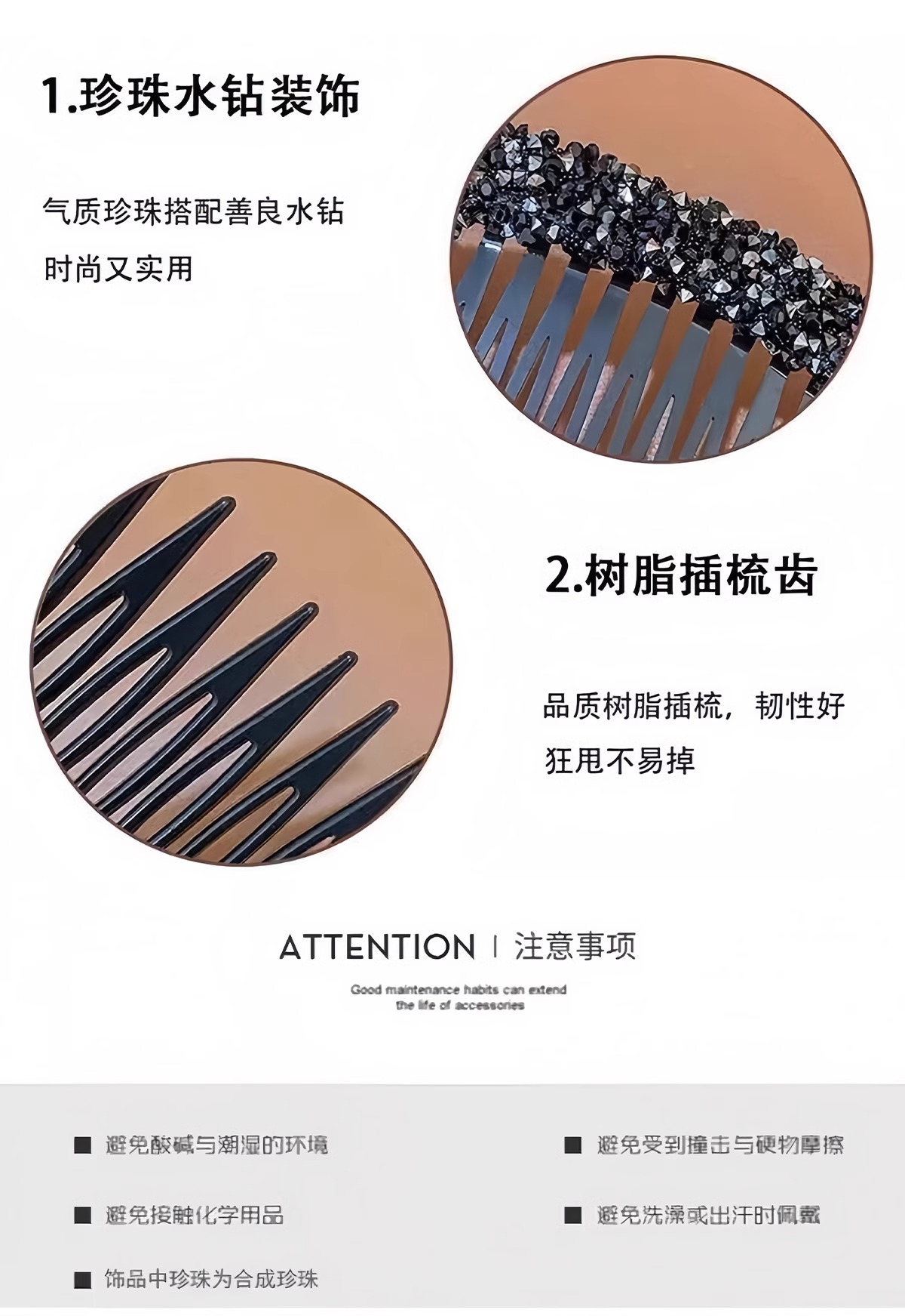 한국식 라인스톤 심플 2025 신형 앞머리 빗, 우아하고 활용도 높은 뒷머리 앞머리 빗스토어 가기