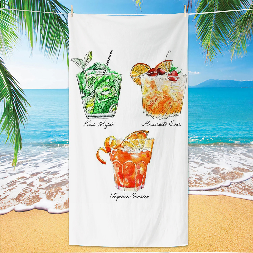 국경 간 마이크로 파이버 와인 유리 비치 타월 디지털 인쇄 맞춤형 비치 목욕 타월 양면 양털 흡수 수영 타월