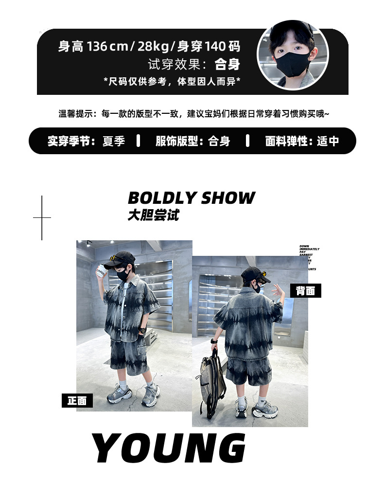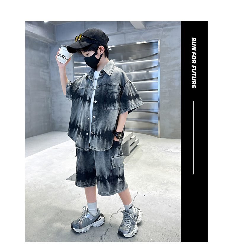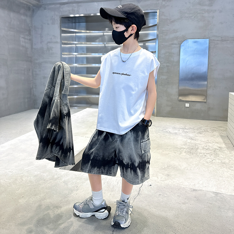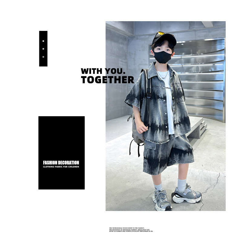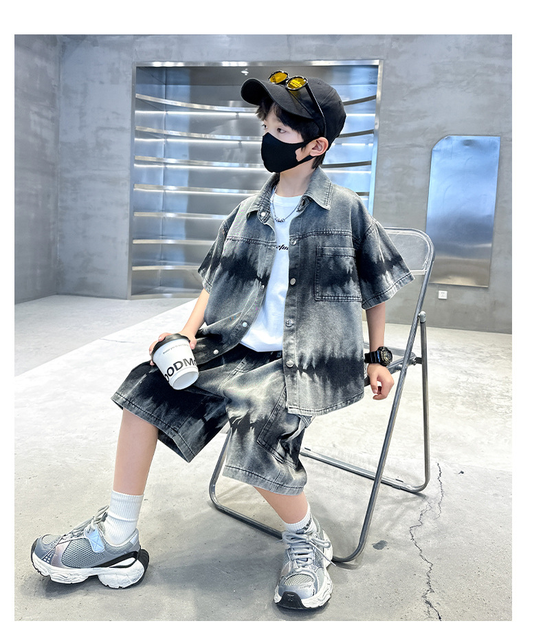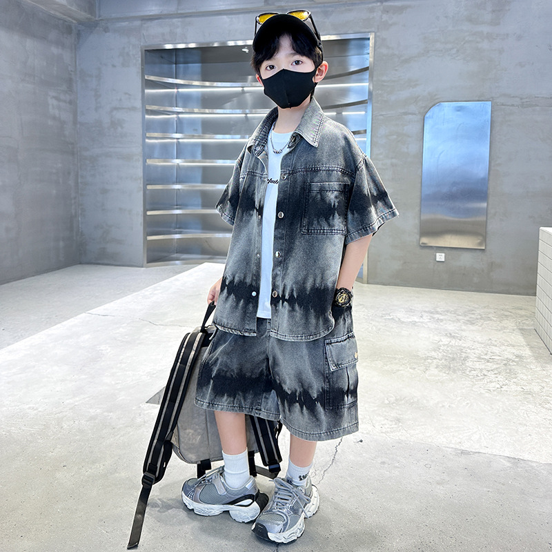 아동복 소년 여름 3 피스 양복 2025 새로운 유행 및 잘 생긴 중대형 어린이 여름 반팔 데님 양복 유행스토어 가기
