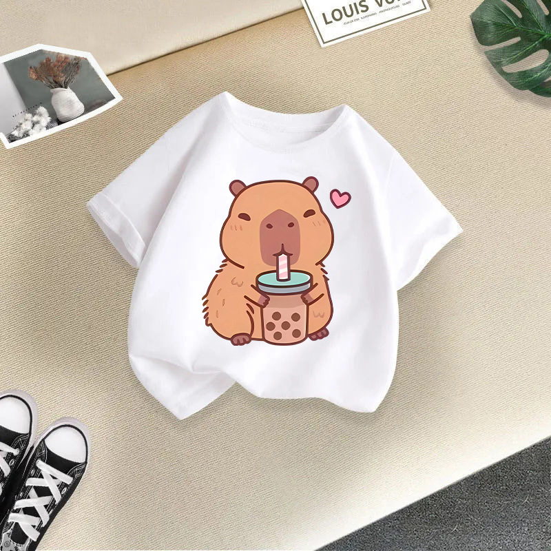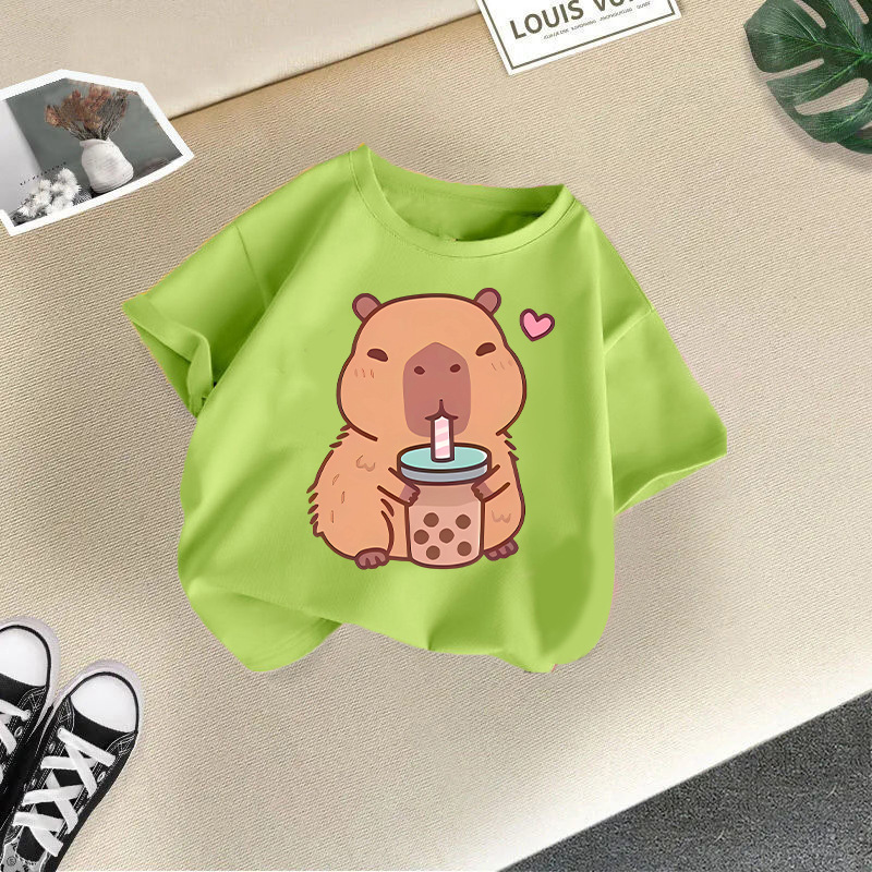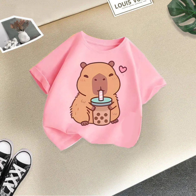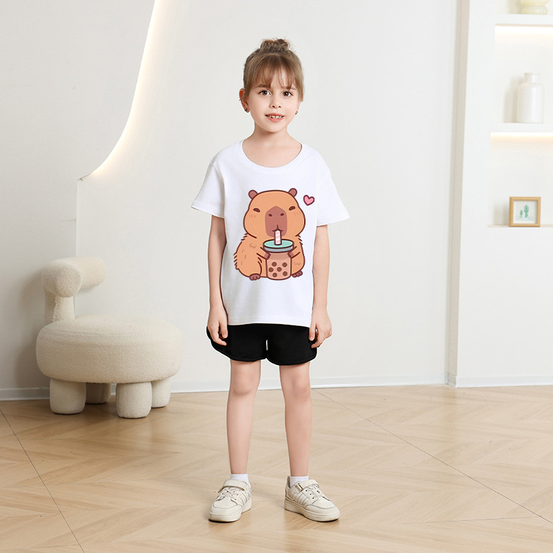 국경 2025 여름 새 소년과 소녀 반팔 티셔츠 만화 인쇄 어린이 느슨한 최고 대외 무역 아동복 트렌디스토어 가기