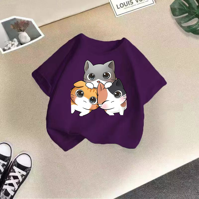 • 보라색 세 마리의 귀여운 고양이 반팔