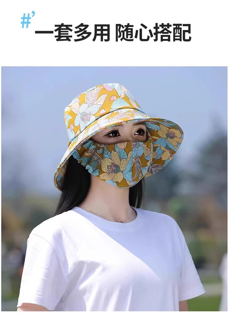 태양 보호 마스크 모자 통합 태양 모자 여성의 자외선 방지 방풍 모자 2025 새로운 야외 여름 태양 모자