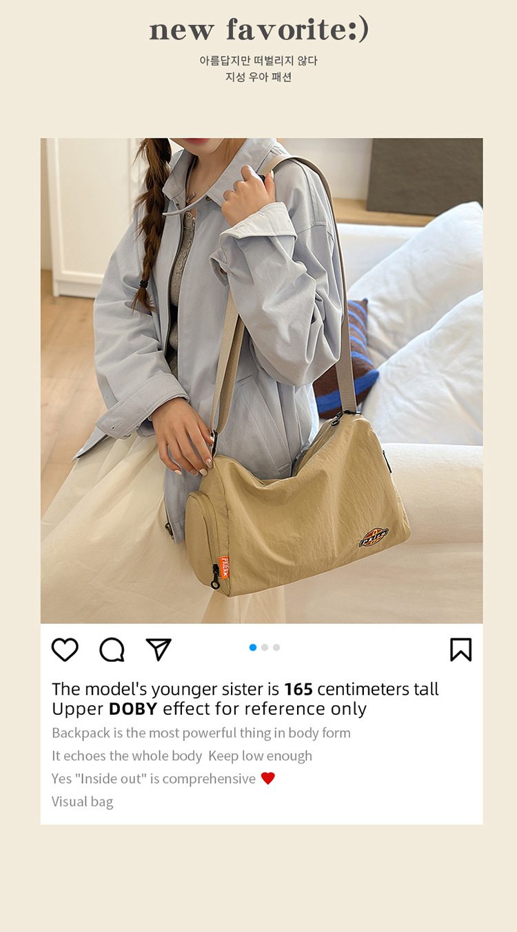 대용량 가방 여성용 워시 트렌디 패션 캐주얼 가방 싱글 숄더 경량 요가 한국어 버전 통근 여행 크로스 바디 백