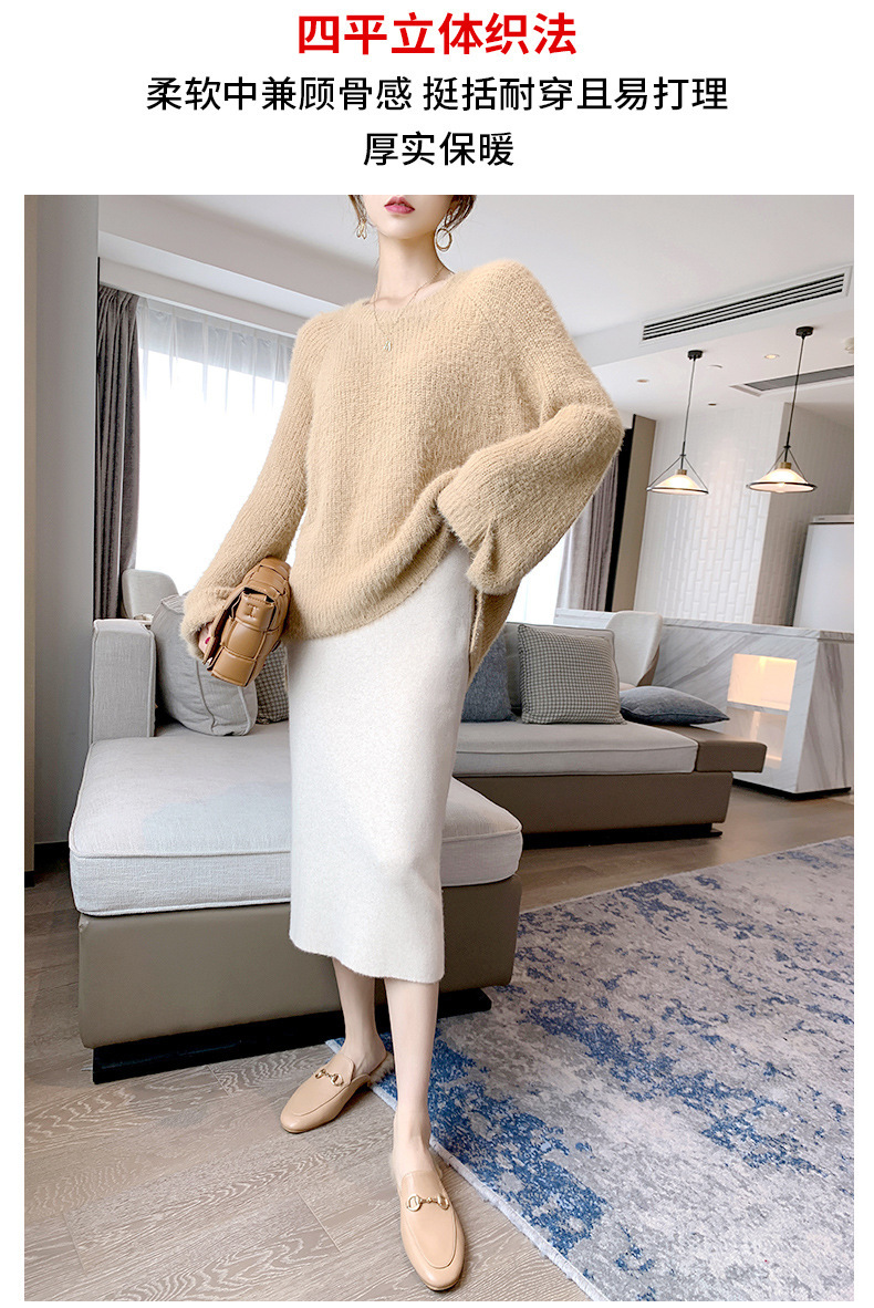 여성용 가을 겨울 스커트, 퓨어 캐시미어, 중간 길이, 루즈, 하이 웨이스트, 무릎 위, 힙 커버, 원스텝 스커트, 니트 스커트