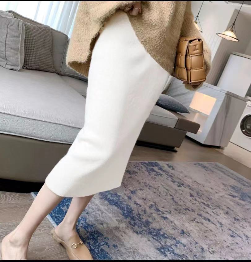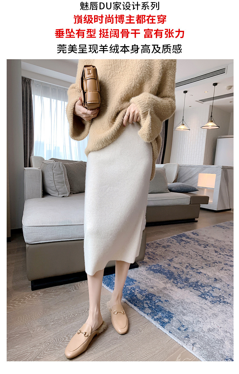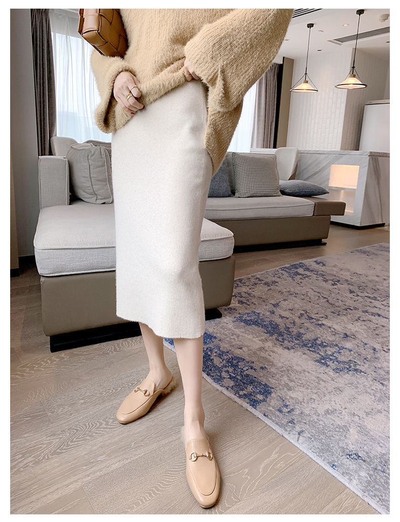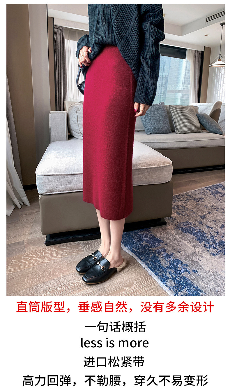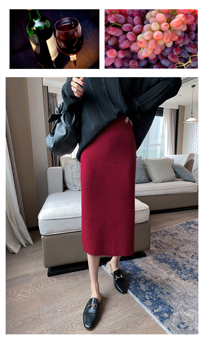여성용 가을 겨울 스커트, 퓨어 캐시미어, 중간 길이, 루즈, 하이 웨이스트, 무릎 위, 힙 커버, 원스텝 스커트, 니트 스커트스토어 가기