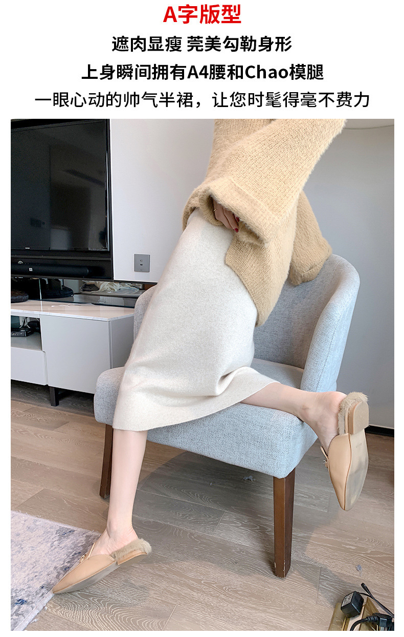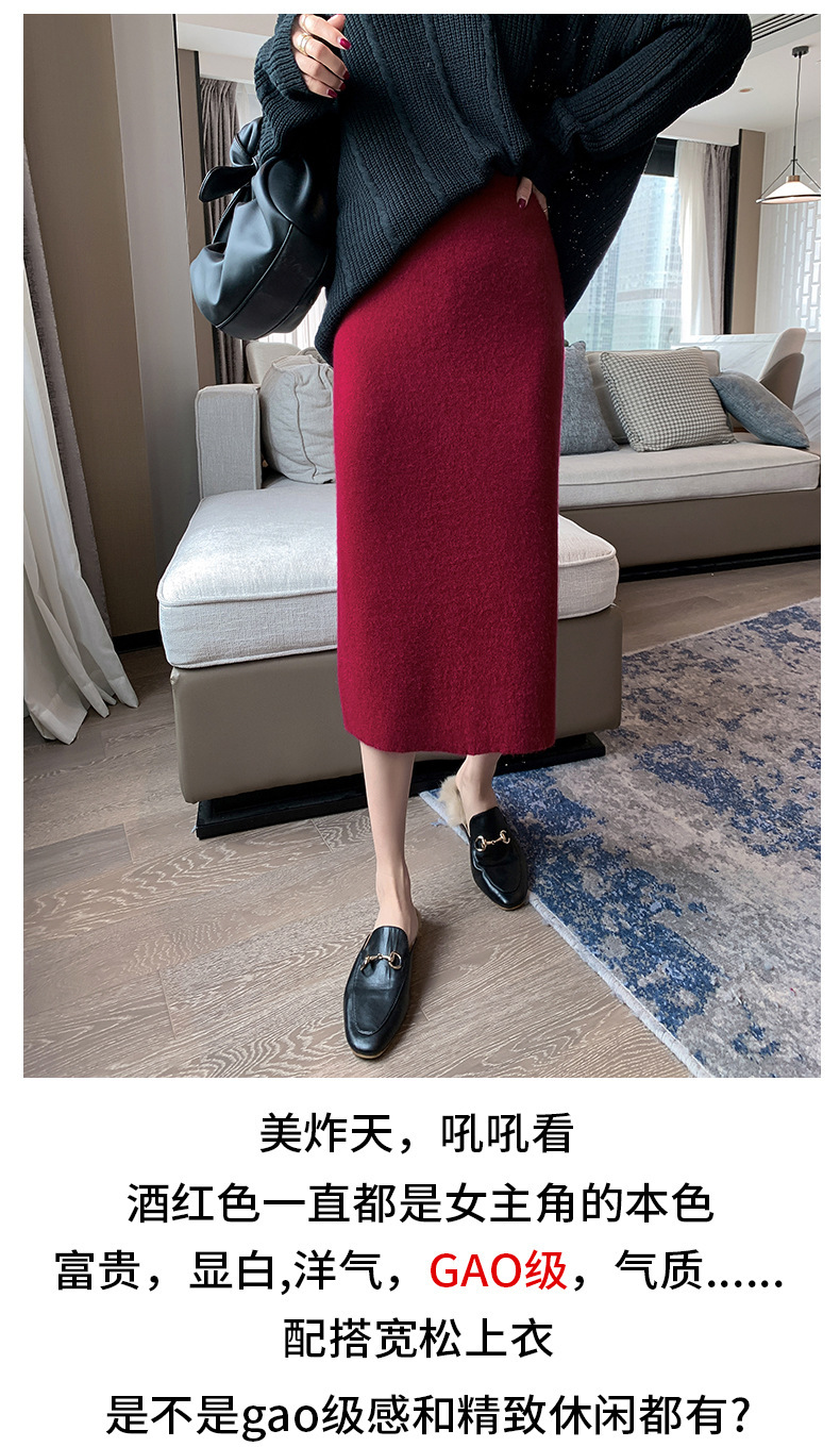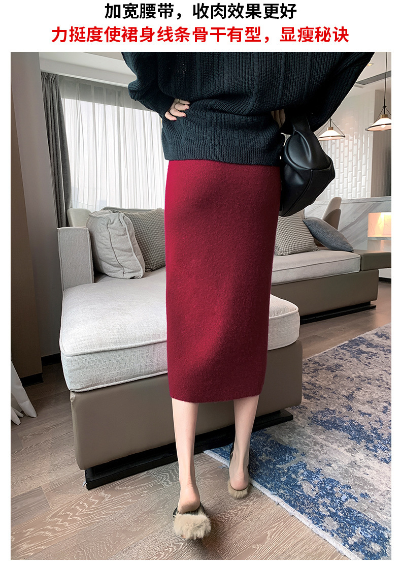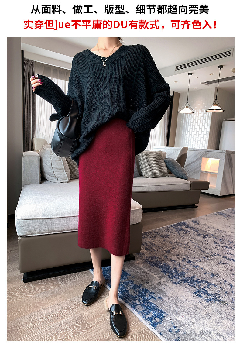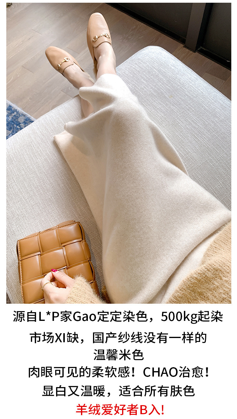 여성용 가을 겨울 스커트, 퓨어 캐시미어, 중간 길이, 루즈, 하이 웨이스트, 무릎 위, 힙 커버, 원스텝 스커트, 니트 스커트스토어 가기