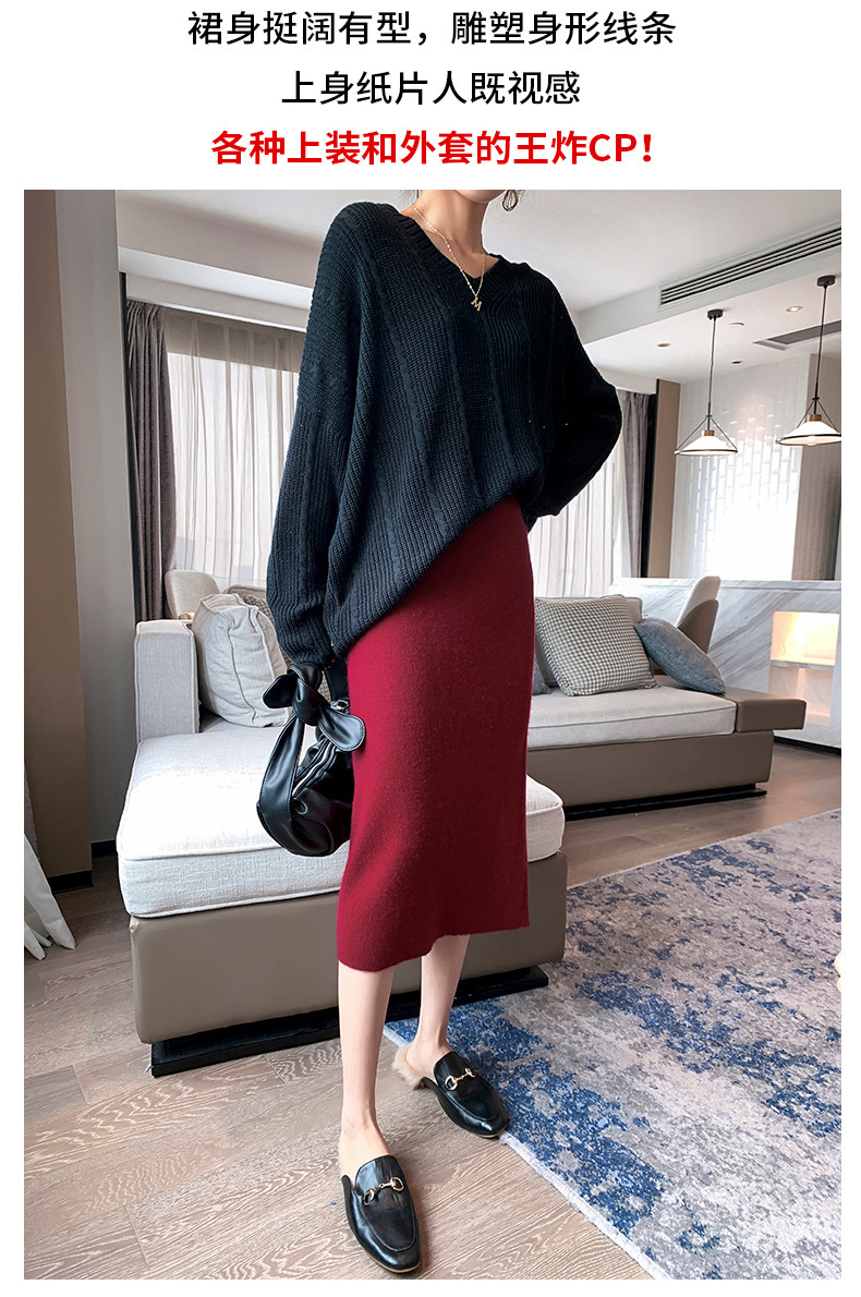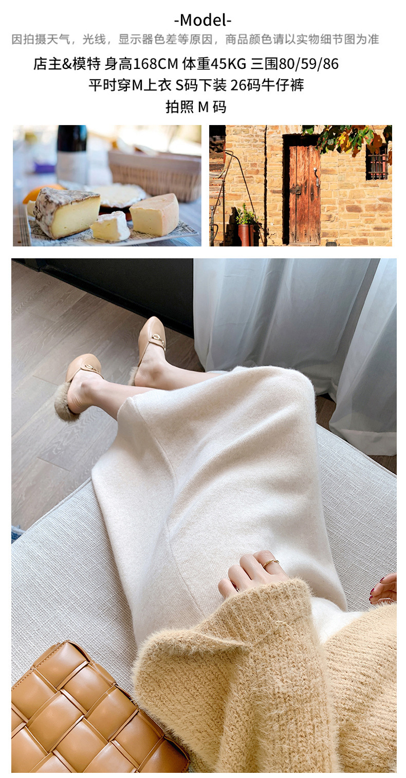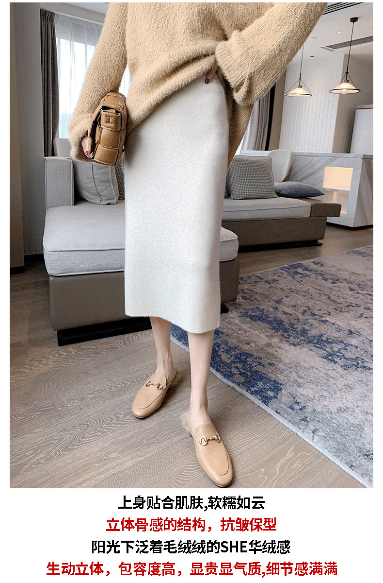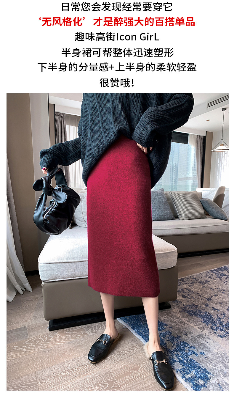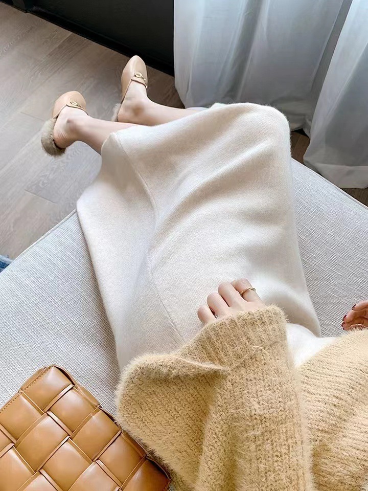 여성용 가을 겨울 스커트, 퓨어 캐시미어, 중간 길이, 루즈, 하이 웨이스트, 무릎 위, 힙 커버, 원스텝 스커트, 니트 스커트스토어 가기